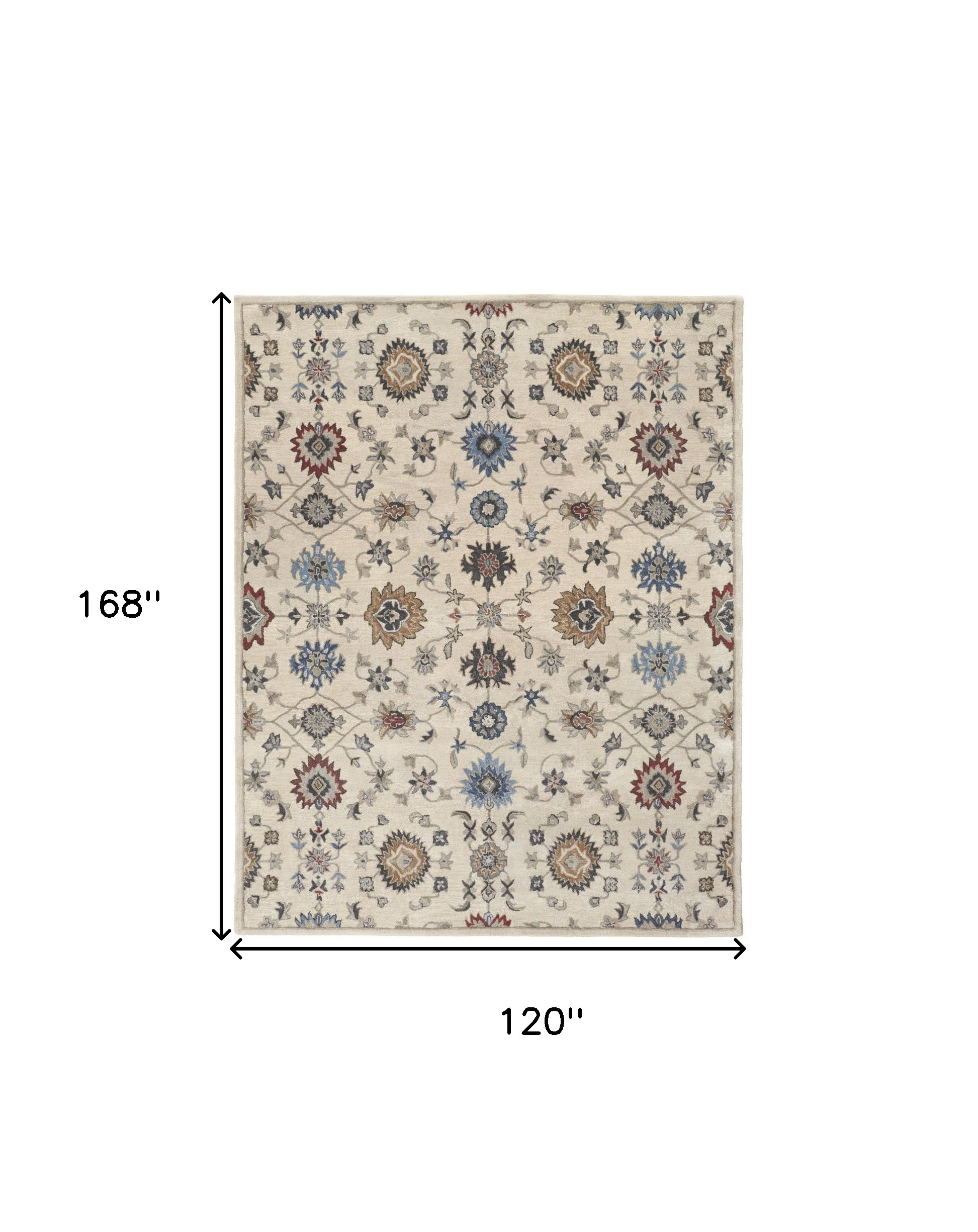 Add some artistry to your room with this 10-foot x 14-foot ivory and blue wool floral hand tufted area rug. This rectangle shaped rug features a floral design in ivory and blue to give it visual interest. A classic shape marries with good looking design for your space ideal for spaces with kids and pets, this rug is stain resistant to help repel stains and spilled liquids. Place this area rug against a hardwood or tile floor and it will enliven your living space with style and sophistication. 120-inch H x 168-inch W x 0.68-inch D