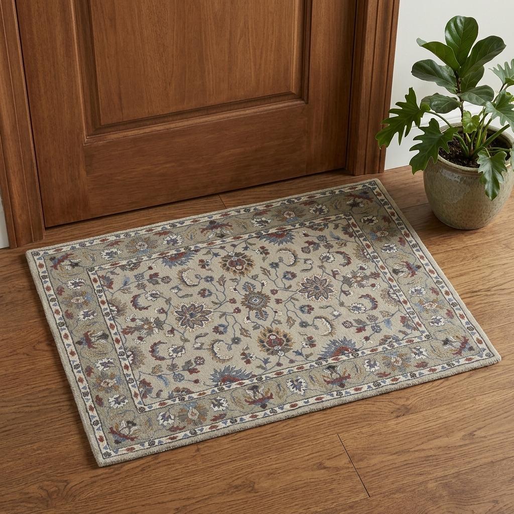 handmade stain resistant area rug, stain resistant area rug, resistant area rug, ivory taupe blue wool floral, wool floral tufted handmade stain |