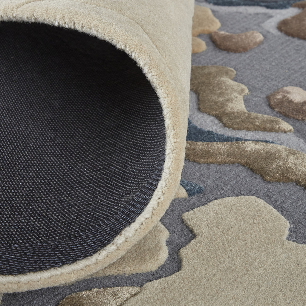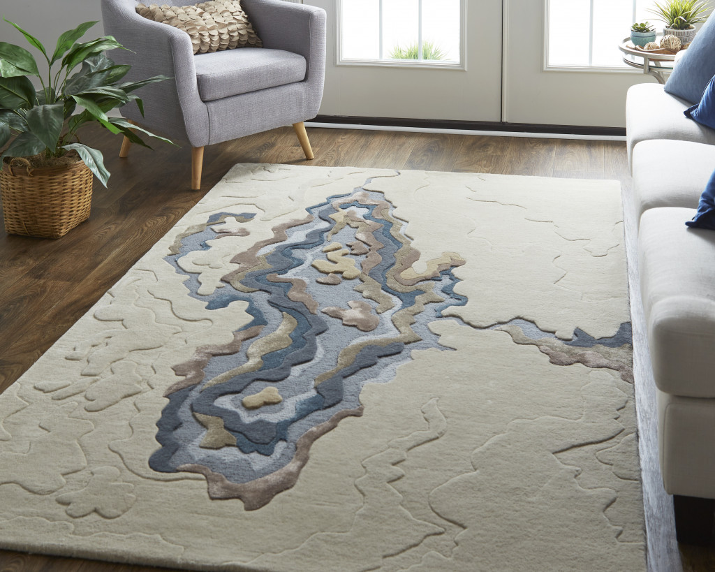 abstract tufted handmade area rug, tufted handmade area rug, handmade area rug, wool abstract tufted handmade area, 9' X 12' tan brown blue wool |