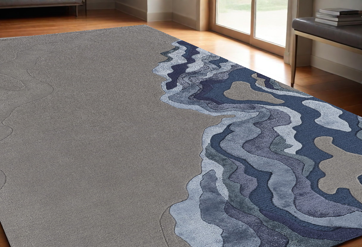 This 5-foot x 8-foot blue and gray wool abstract hand tufted area rug, is a great way to add warmth to a room. This rectangle shaped rug features a abstract design in blue and gray to give it visual interest. A classic shape marries with good looking design for your space area rugs help to give warmth and sense of home to your space. 60-inch H x 96-inch W x 0.59-inch D