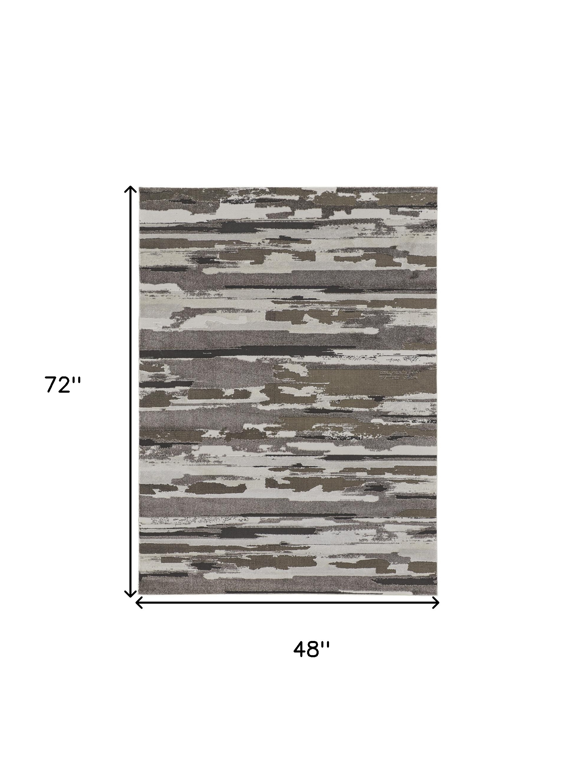 This 4-foot x 6-foot gray ivory and brown abstract distressed area rug, is a great way to add warmth to a room. Ideal for spaces with kids and pets, this rug is stain resistant to help repel dirt and spilled liquids. Built to last, this rug crafted from polypropylene fibers is known for its durability and long lasting appeal. Rugs are a great way to showcase your style, hide imperfections, warm your home and reduce noise. 48.00-inch h x 72.00-inch w x 0.63-inch d.