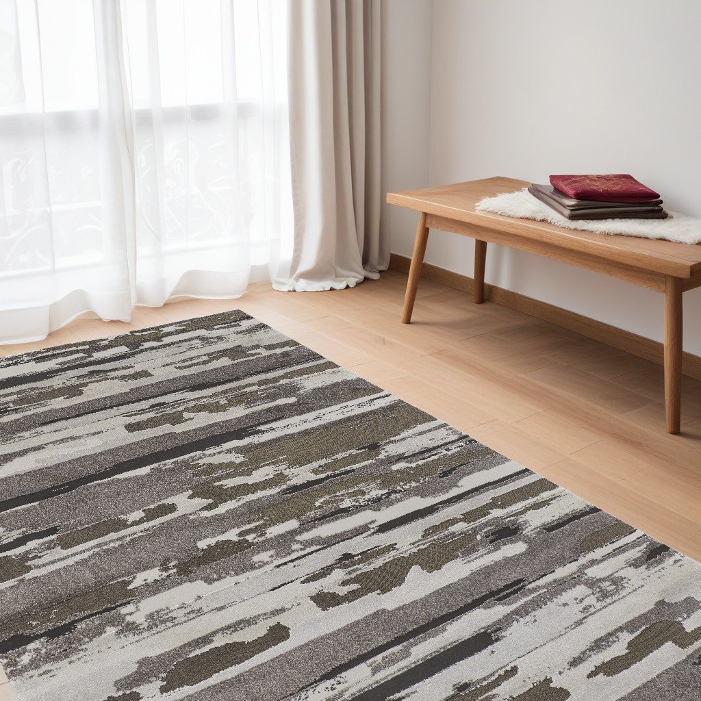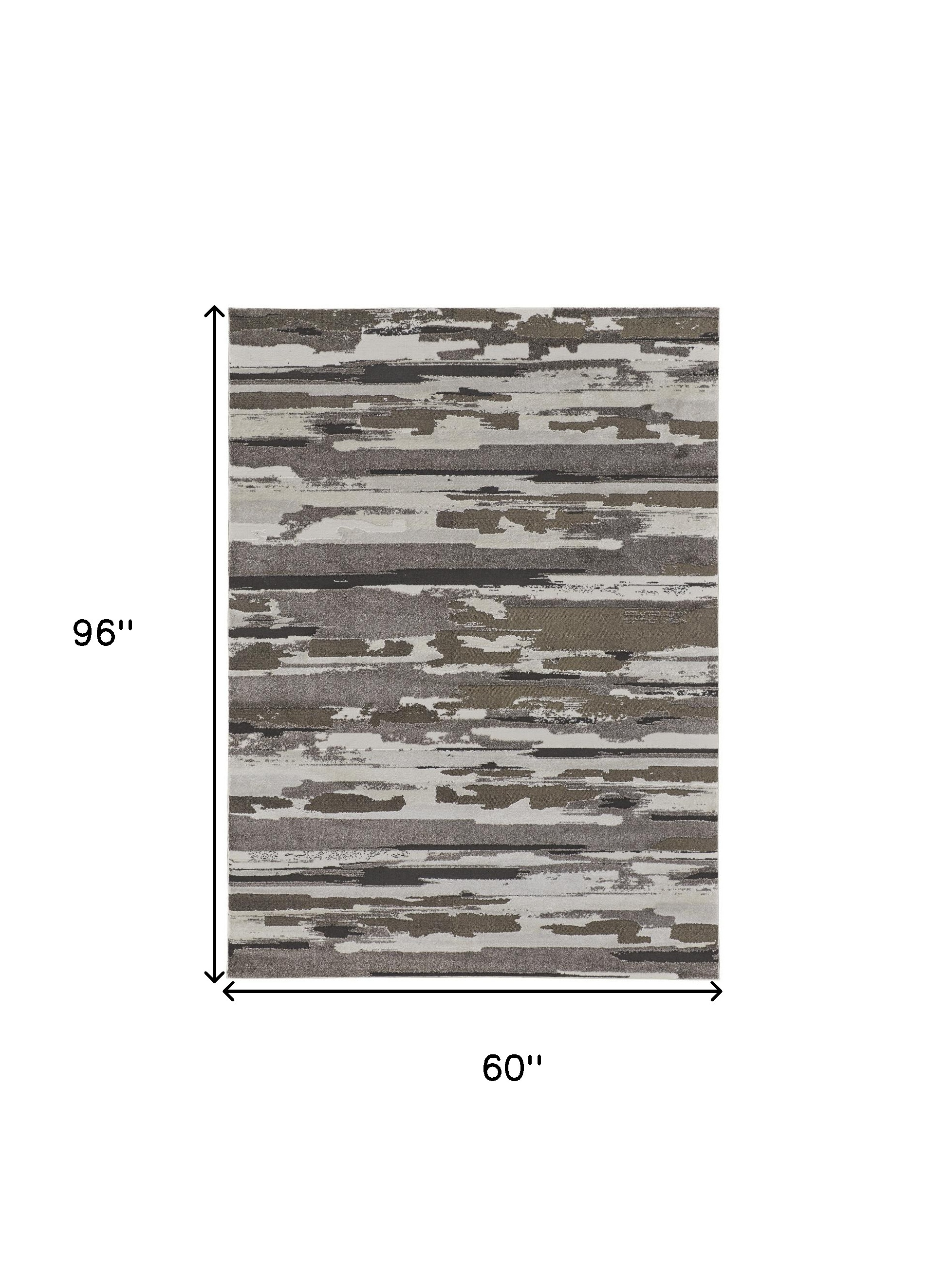 This 5-foot x 8-foot gray ivory and brown abstract distressed area rug, is a great way to add warmth to a room. Ideal for spaces with kids and pets, this rug is stain resistant to help repel dirt and spilled liquids. Built to last, this rug crafted from polypropylene fibers is known for its durability and long lasting appeal. Rugs are a great way to showcase your style, hide imperfections, warm your home and reduce noise. 60.00-inch h x 96.00-inch w x 0.63-inch d.
