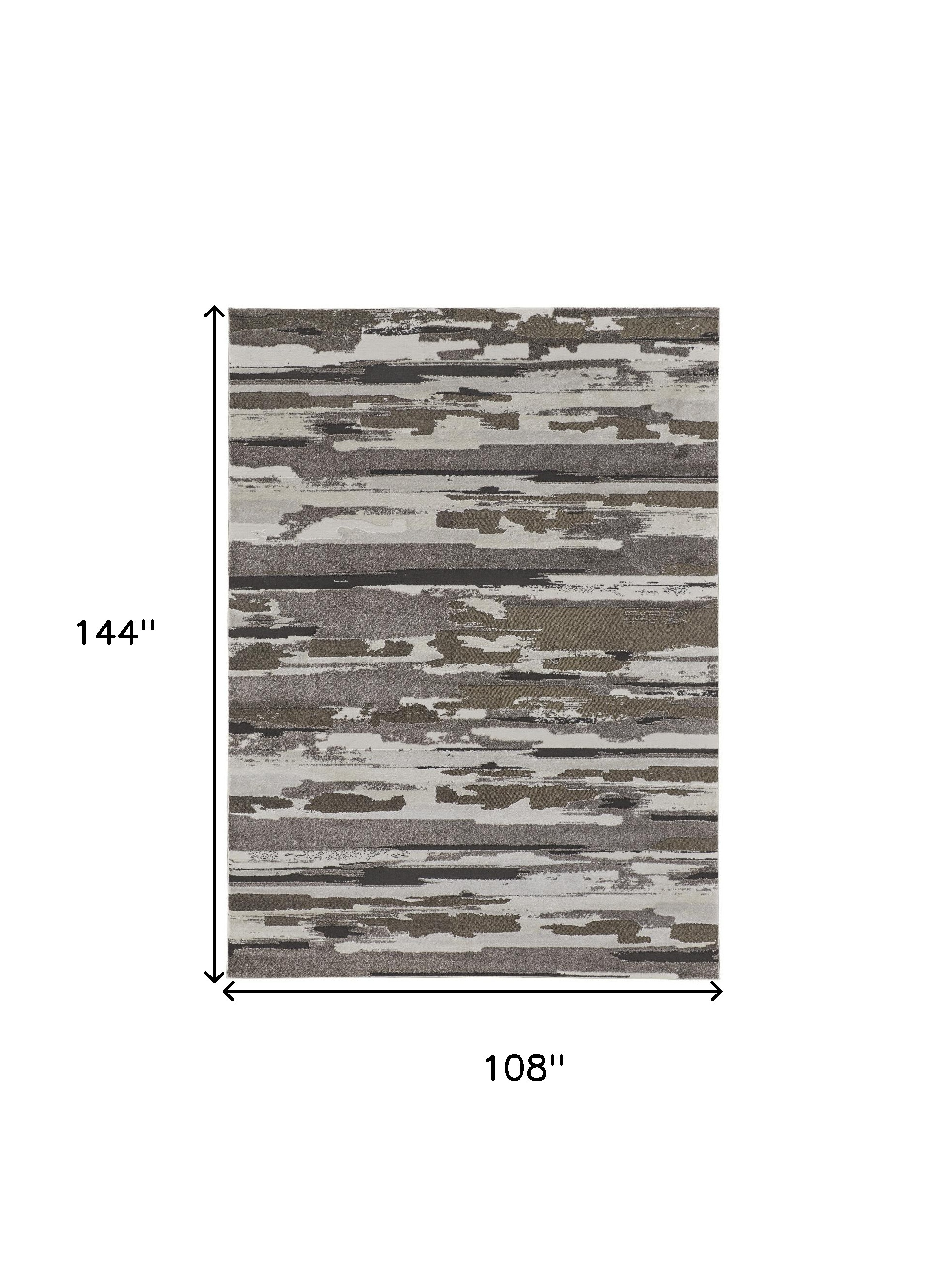 9' X 12' Gray Ivory And Brown Abstract Distressed Area Rug