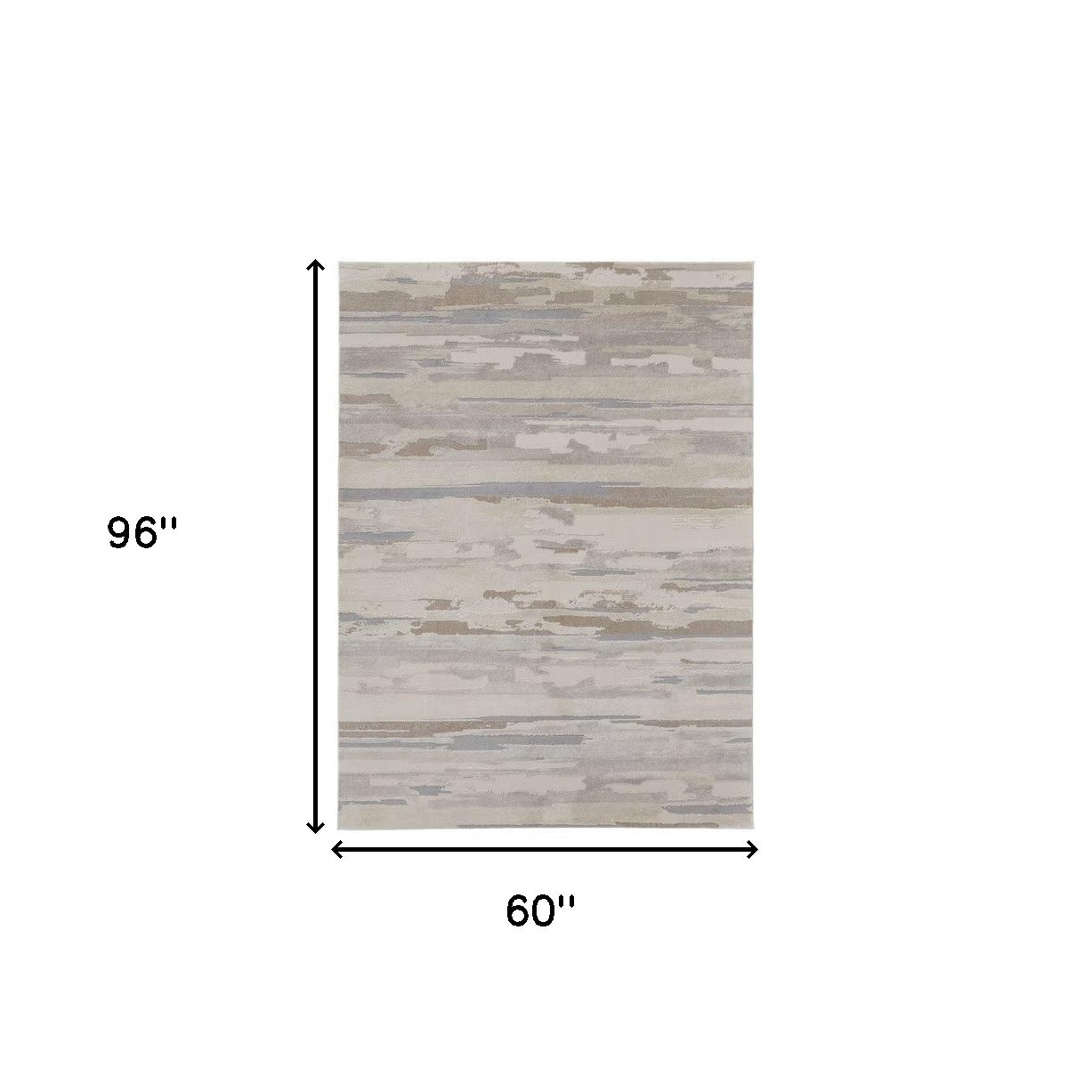 Add some artistry to your room with this 5-foot x 8-foot brown ivory and tan abstract distressed area rug. Ideal for spaces with kids and pets, this rug is stain resistant to help repel dirt and spilled liquids. Built to last, this rug crafted from polypropylene fibers is known for its durability and long lasting appeal. Rugs are a great way to showcase your style, hide imperfections, warm your home and reduce noise. 60.00-inch h x 96.00-inch w x 0.63-inch d.