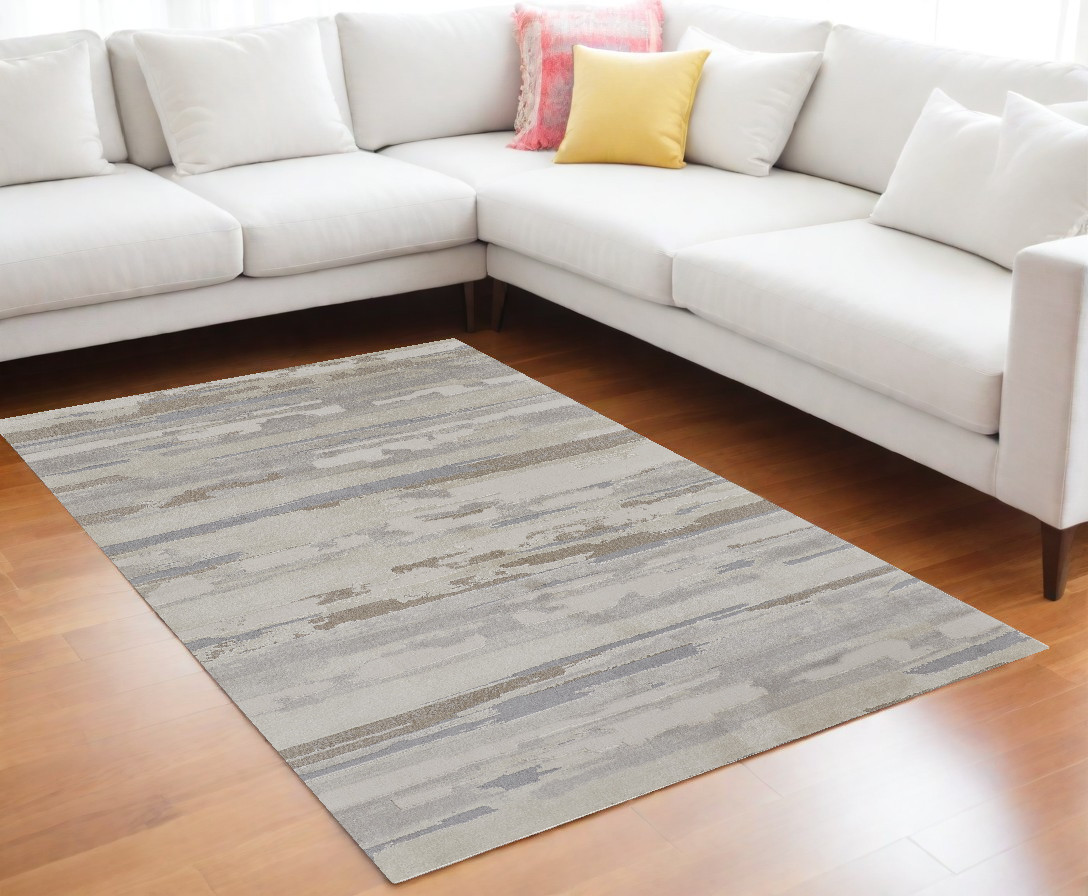 Add some artistry to your room with this 9-foot x 12-foot brown ivory and tan abstract distressed area rug. Ideal for spaces with kids and pets, this rug is stain resistant to help repel dirt and spilled liquids. Built to last, this rug crafted from polypropylene fibers is known for its durability and long lasting appeal. Rugs are a great way to showcase your style, hide imperfections, warm your home and reduce noise. 108.00-inch h x 144.00-inch w x 0.63-inch d.