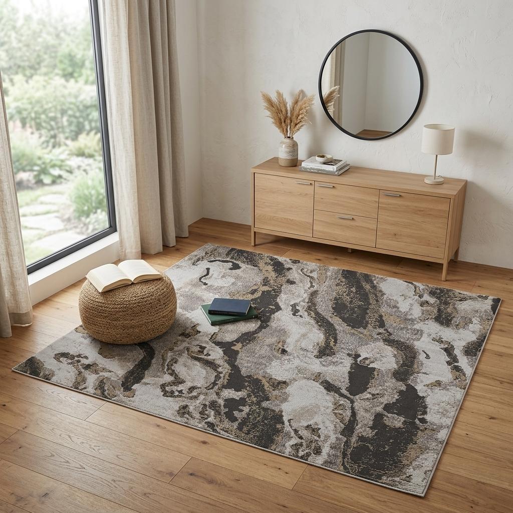 Add great coloration and comfortable texture to your space with this 4-foot x 6-foot brown and ivory abstract power loom distressed area rug. This rectangle shaped rug features a abstract design that will add a functional and decorative accent to your space. Ideal for spaces with kids and pets, this rug is stain resistant to help repel dirt and spilled liquids. This smaller sized rug is just what you need for your walkway, or in front of door, cabinet, refrigerator, or chair. 48-inch h x 72-inch w x 0.63-inch d