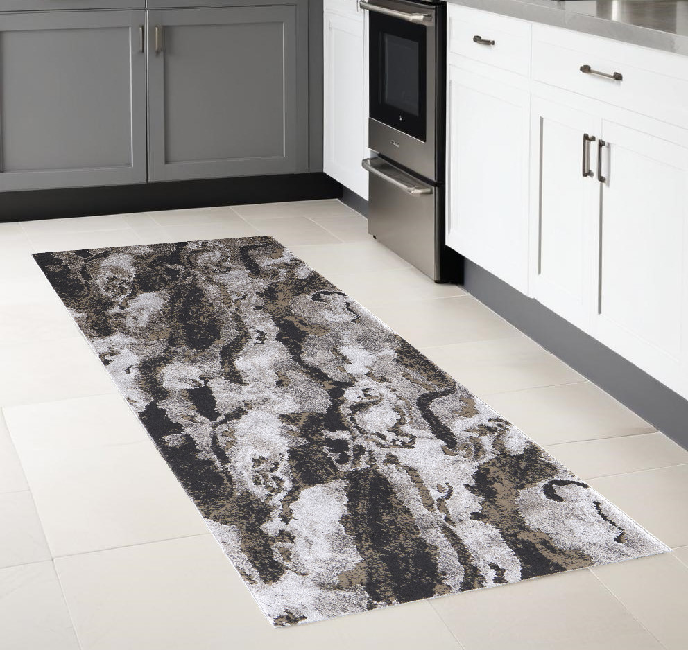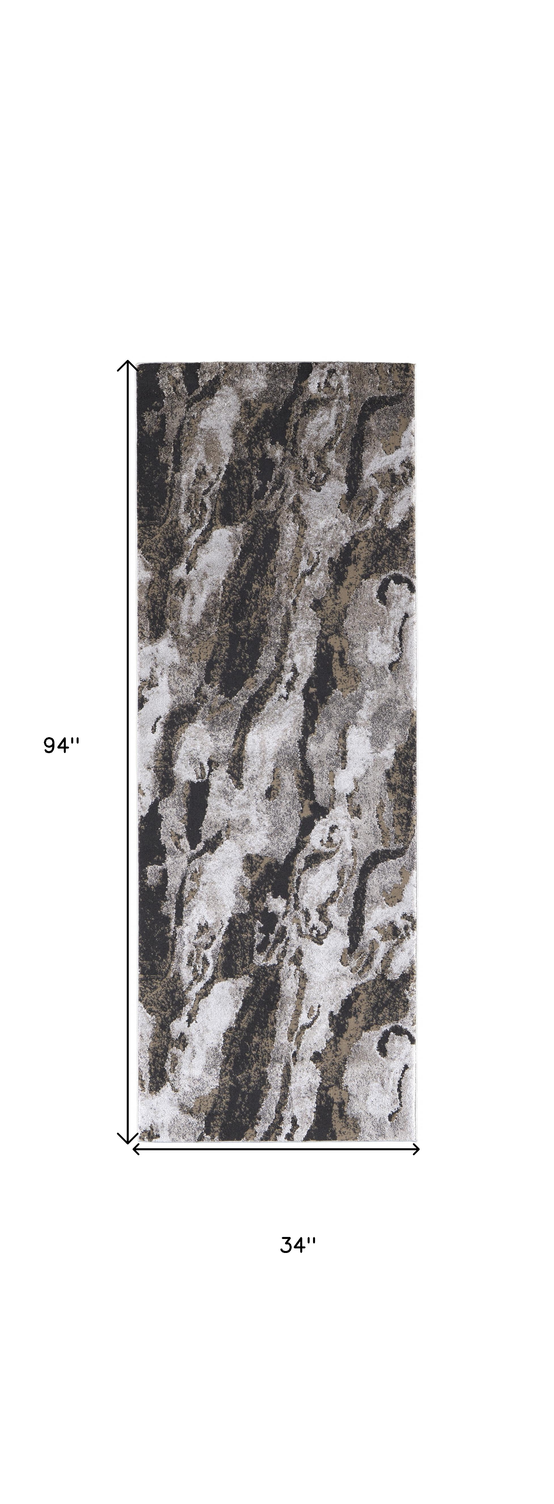 Set an inviting tone in your space with this 8-foot brown and ivory abstract runner rug. Ideal for spaces with kids and pets, this rug is stain resistant to help repel dirt and spilled liquids. Built to last, this rug crafted from polypropylene fibers is known for its durability and long lasting appeal. Rugs are a great way to showcase your style, hide imperfections, warm your home and reduce noise. 34.00-inch h x 94.00-inch w x 0.63-inch d.