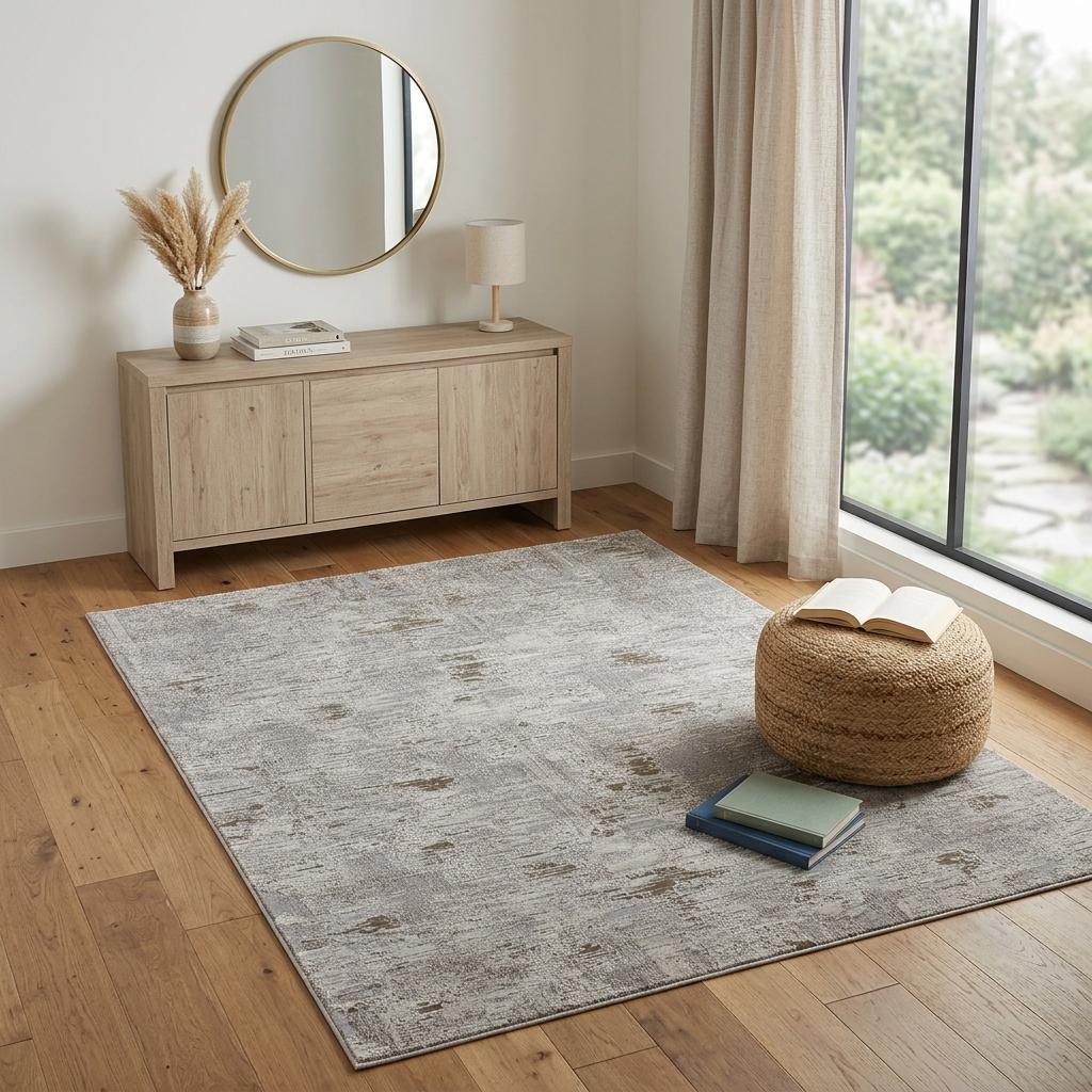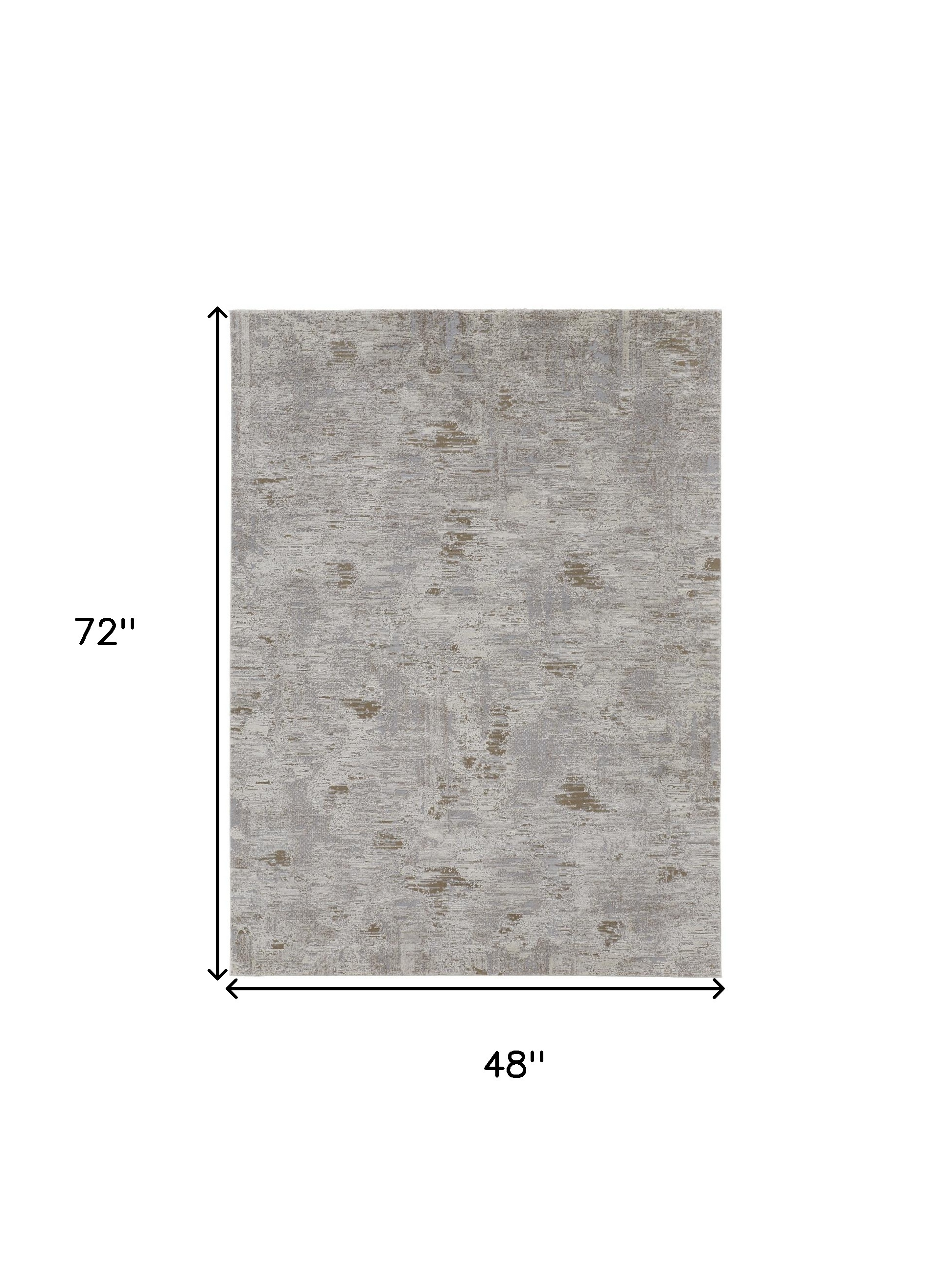 This 4-foot x 6-foot gray ivory and tan abstract distressed area rug, is a great way to add warmth to a room. Ideal for spaces with kids and pets, this rug is stain resistant to help repel dirt and spilled liquids. Built to last, this rug crafted from polypropylene fibers is known for its durability and long lasting appeal. This smaller sized, contemporary styled rug is just what you need for your walkway, bedside, in front of door, cabinet, refrigerator, or chair. 48.00-inch h x 72.00-inch w x 0.63-inch d.