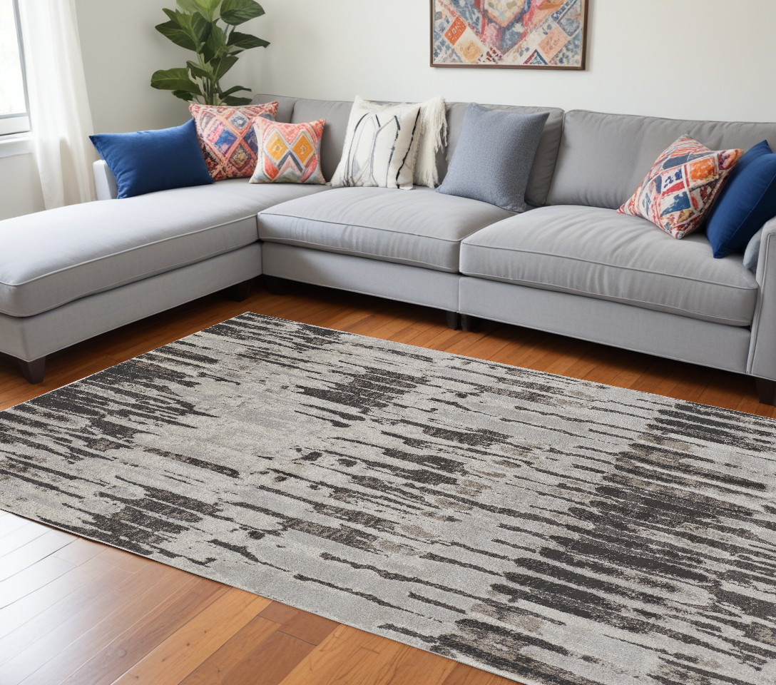 Add some artistry to your room with this 7-foot x 10-foot gray and ivory abstract power loom area rug. This rectangle shaped rug features a abstract design in gray and ivory to give it visual interest. A classic shape marries with good looking design for your space ideal for spaces with kids and pets, this rug is stain resistant to help repel stains and spilled liquids. Area rugs help to give warmth and sense of home to your space. 79-inch H x 114-inch W x 0.63-inch D