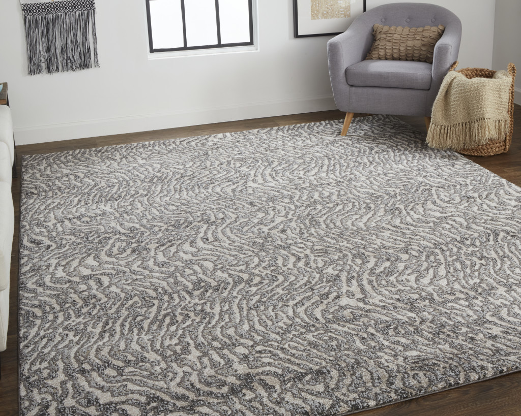 Add great coloration and comfortable texture to your space with this 10-foot x 14-foot gray and ivory abstract power loom area rug. This rectangle shaped rug features a abstract design in gray and ivory to give it visual interest. A classic shape marries with good looking design for your space ideal for spaces with kids and pets, this rug is stain resistant to help repel stains and spilled liquids. Area rugs help to give warmth and sense of home to your space. 120-inch H x 168-inch W x 0.63-inch D