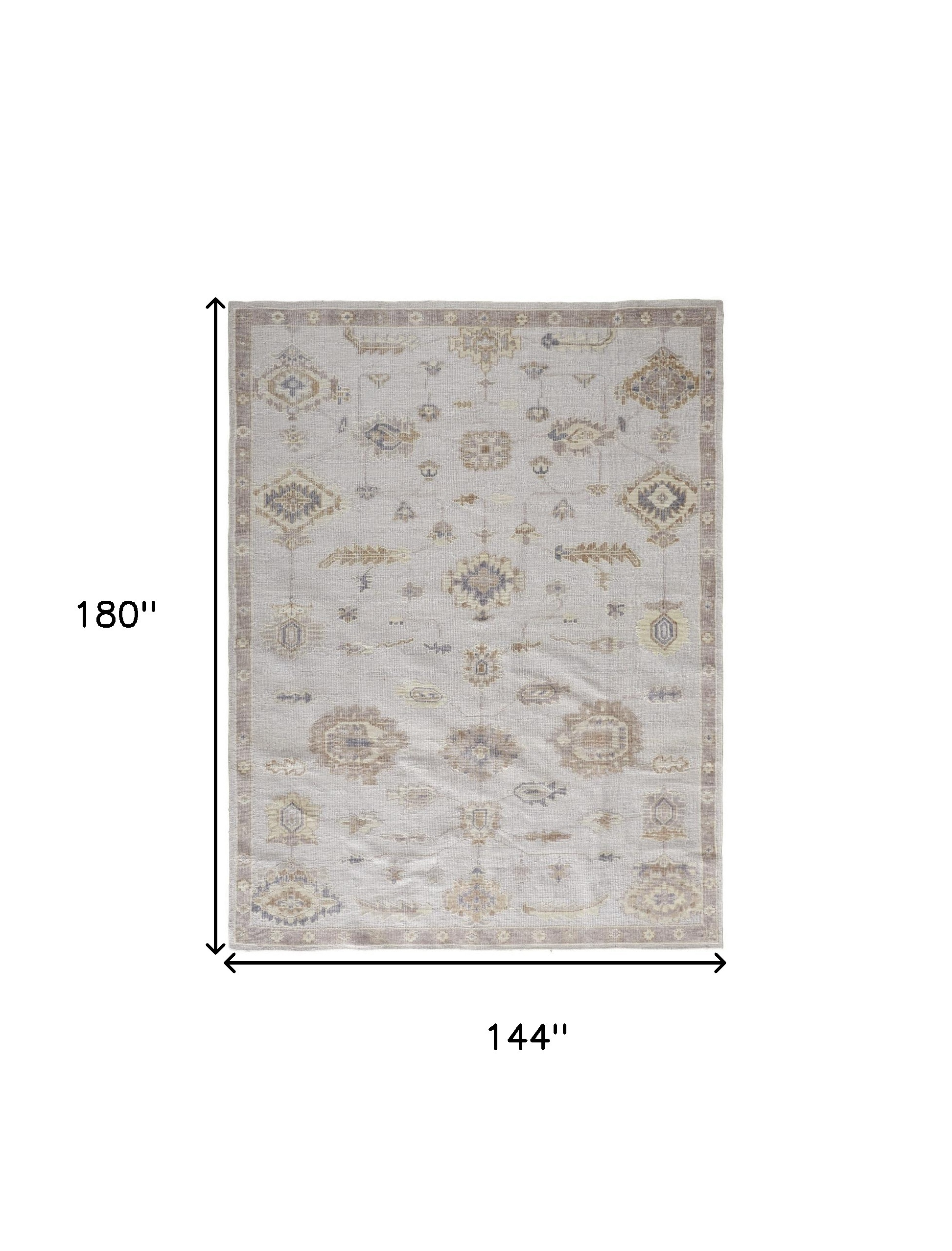 Add great coloration and comfortable texture to your space with this 12' x 15' ivory and orange floral hand knotted stain resistant area rug. This rectangle shaped rug features a floral design in ivory and orange to give it visual interest. A classic shape marries with good looking design for your space Ideal for spaces with kids and pets, this rug is stain resistant to help repel stains and spilled liquids. Crafted by skilled artisans, this hand knotted rug is genuine and unique. No two will be exactly alike. Place this area rug against a hardwood or tile floor and it will enliven your living space with style and sophistication. 0.35" H x 144" W x 180" D