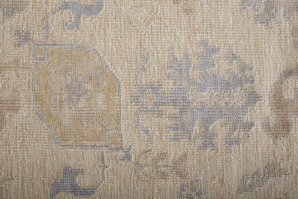 Set an inviting tone in your space with this 10' x 14' tan orange and blue floral hand knotted stain resistant area rug. This rectangle shaped rug features a floral design in tan orange and blue to give it visual interest. A classic shape marries with good looking design for your space Ideal for spaces with kids and pets, this rug is stain resistant to help repel stains and spilled liquids. Crafted by skilled artisans, this hand knotted rug is genuine and unique. No two will be exactly alike. Place this area rug against a hardwood or tile floor and it will enliven your living space with style and sophistication. 0.35" H x 120" W x 168" D