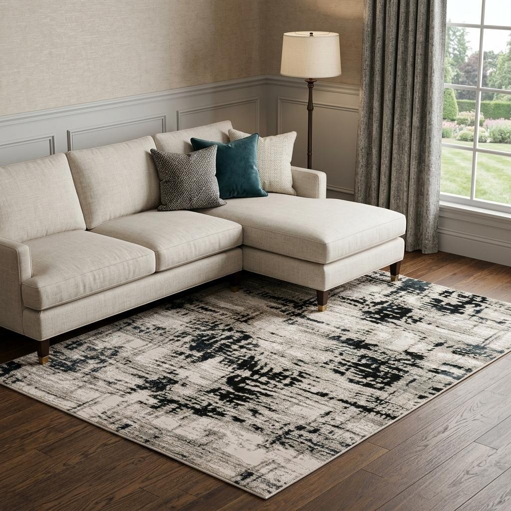 gray white abstract area rug, white abstract area rug, abstract area rug, black gray white abstract area, 9' X 12' black gray white |