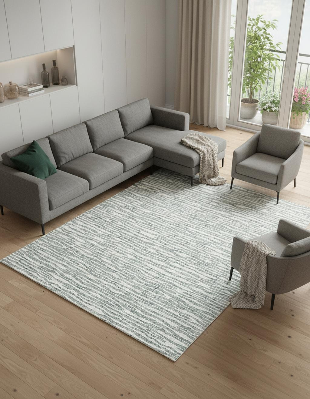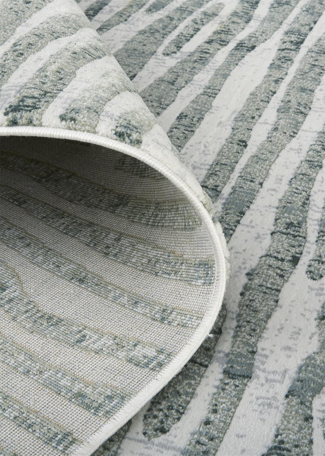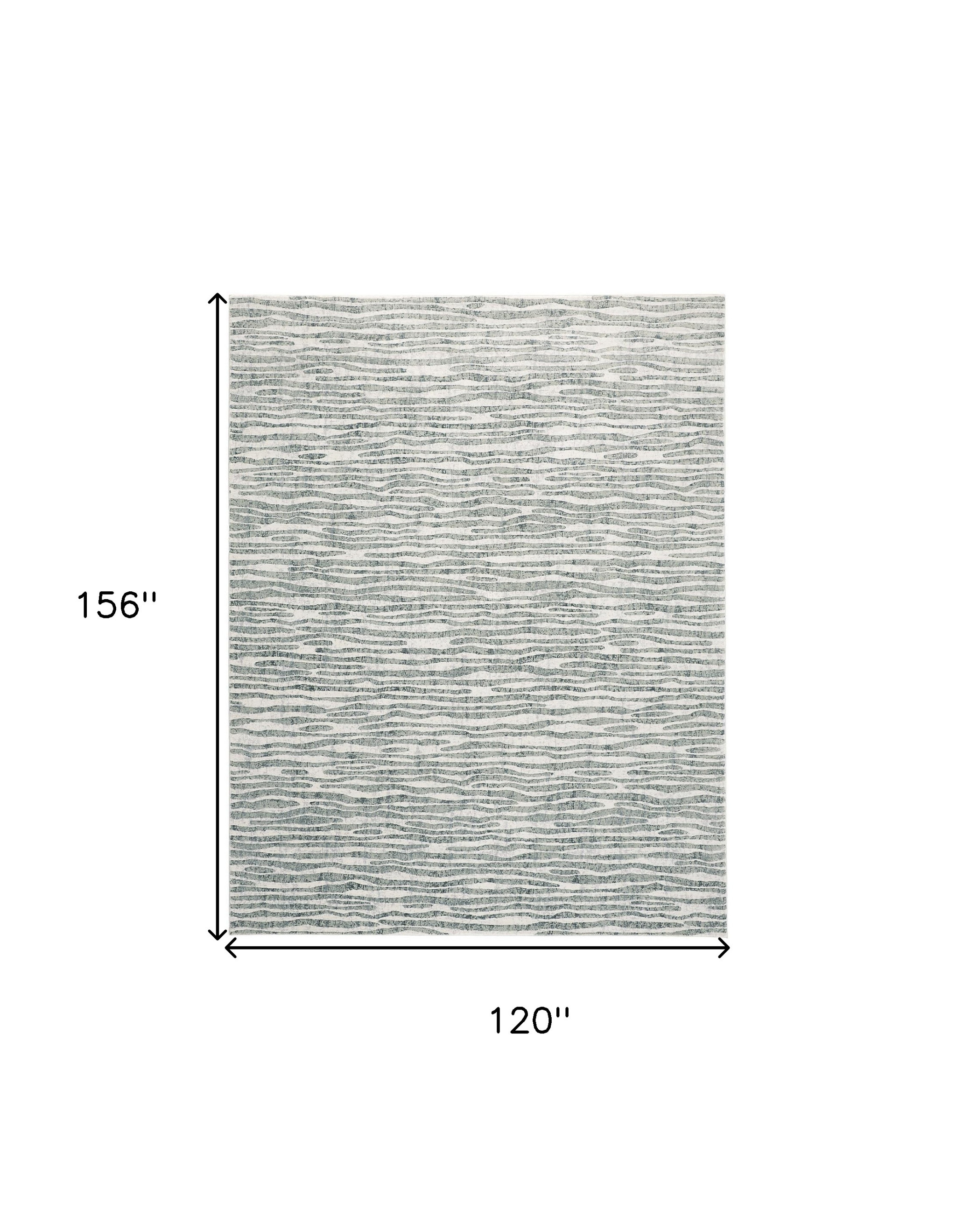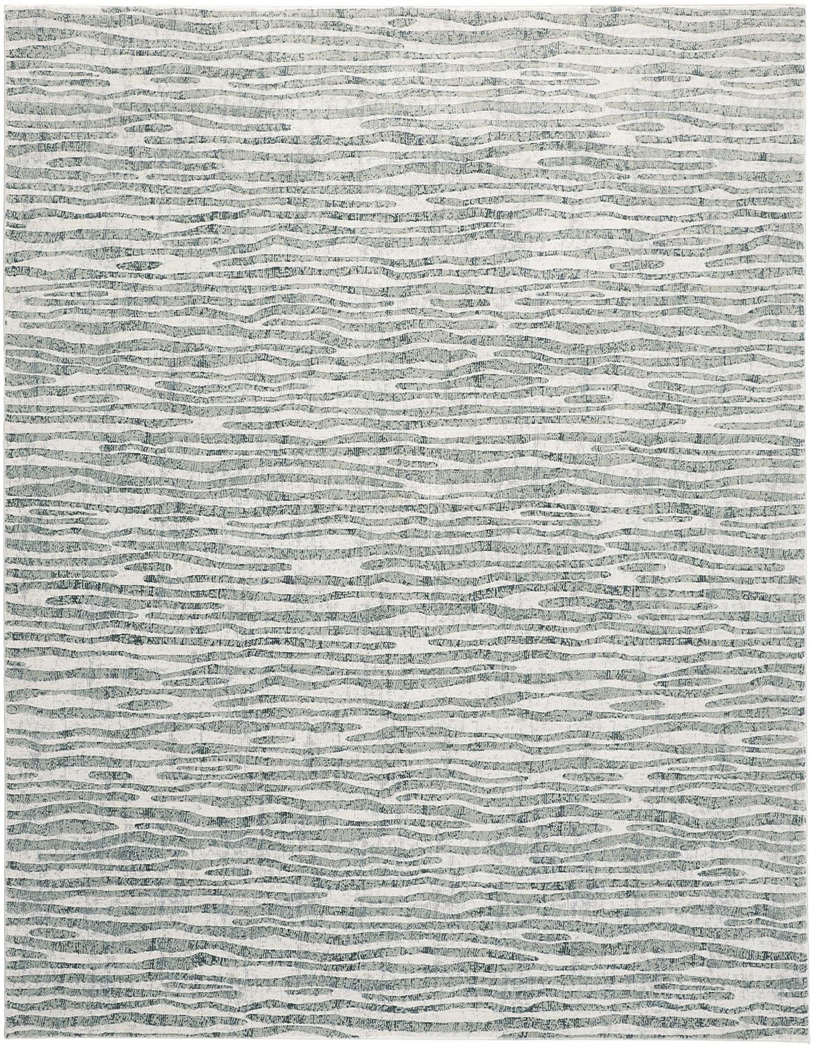 Set an inviting tone in your space with this 10' x 13' gray green and ivory striped distressed stain resistant area rug. This rectangle shaped rug features a striped design in gray green and ivory to give it visual interest. A classic shape marries with good looking design for your space Made in Turkey, this rug offers high quality combined with good looking designer sensibilities. Ideal for spaces with kids and pets, this rug is stain resistant to help repel stains and spilled liquids. Area Rugs help to give warmth and sense of home to your space. 0.43" H x 120" W x 156" D
