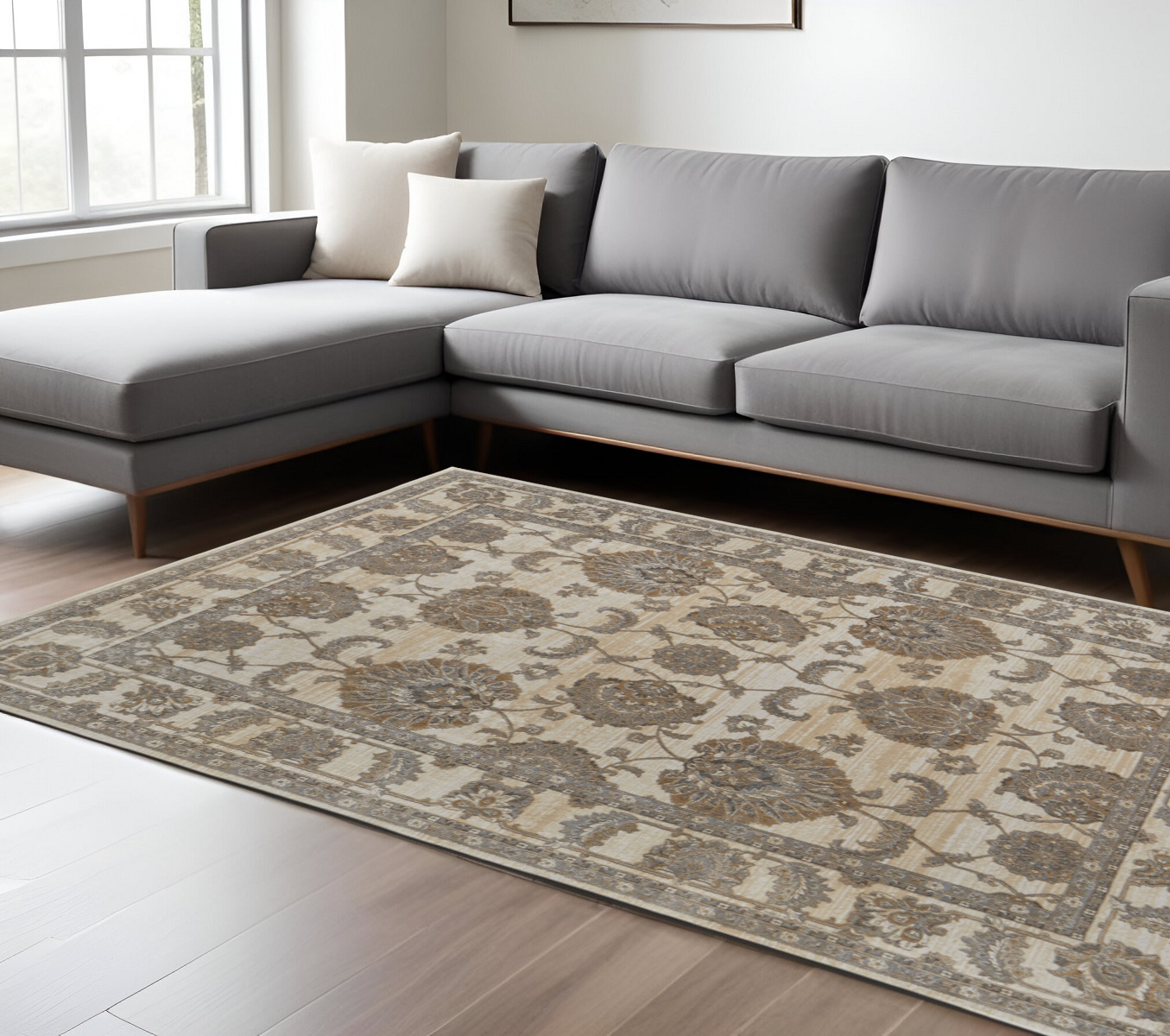 Add great coloration and comfortable texture to your space with this 9-foot x 12-foot tan and brown oriental area rug. Rugs are a great way to showcase your style, hide imperfections, warm your home and reduce noise. Crafted with a power loom technique, this rectangular rug features a durable machine-made construction. The viscose material adds a luxurious feel underfoot while the latex backing ensures stability and prevents slipping. A rug pad is recommended for added comfort and longevity, making this a perfect choice for any room in your home. 108.00-inch h x 144.00-inch w x 0.39-inch d.