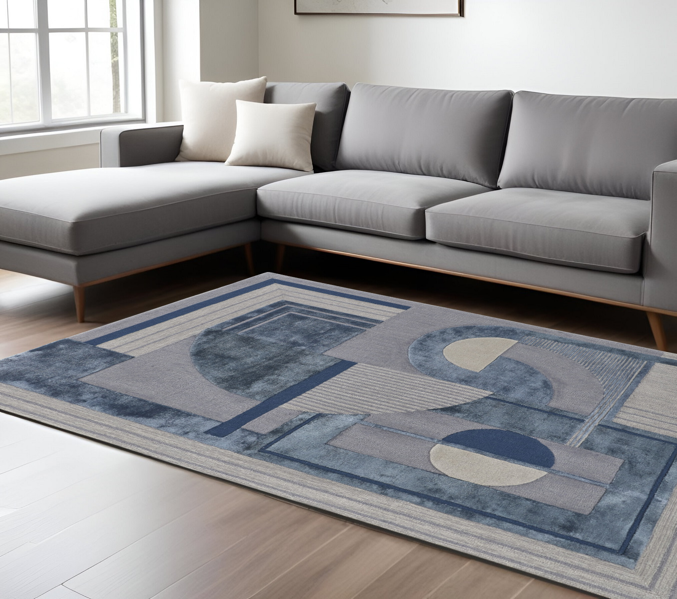 Add some artistry to your room with this 9' x 12' blue ivory and gray wool striped tufted handmade area rug. This rectangle shaped rug features a striped design in blue ivory and gray to give it visual interest. A classic shape marries with good looking design for your space Place this area rug against a hardwood or tile floor and it will enliven your living space with style and sophistication. 0.47" H x 108" W x 144" D