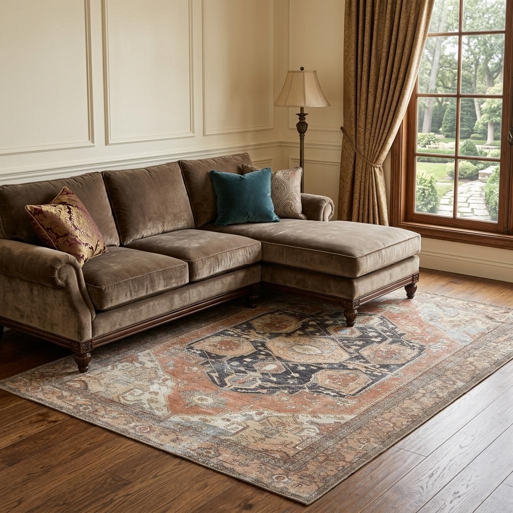Add some artistry to your room with this 9' x 12' orange brown and taupe abstract area rug. This rectangle shaped rug features a abstract design in orange brown and taupe to give it visual interest. A classic shape marries with good looking design for your space Made in Turkey, this rug offers high quality combined with good looking designer sensibilities. Area Rugs help to give warmth and sense of home to your space. 0.08" H x 110" W x 144" D