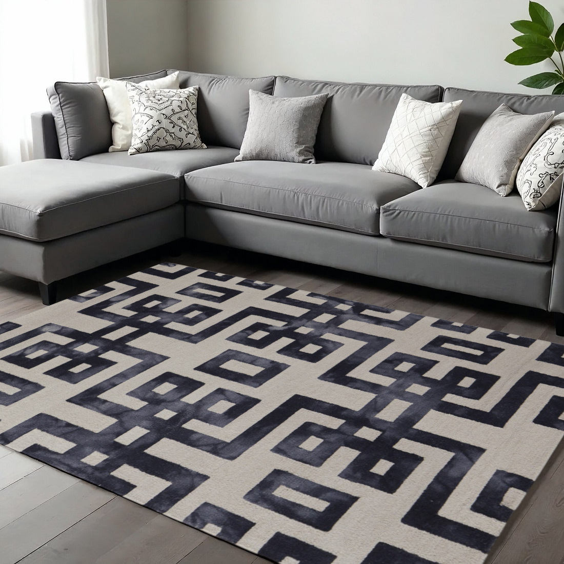 Add some artistry to your room with this 8-foot x 11-foot ivory and black wool geometric hand tufted area rug. Ideal for spaces with kids and pets, this rug is stain resistant to help repel dirt and spilled liquids. Crafted by skilled artisans, this hand tufted rug is genuine and unique. No two will be exactly alike. Rugs are a great way to showcase your style, hide imperfections, warm your home and reduce noise. 96.00-inch h x 132.00-inch w x 0.24-inch d.