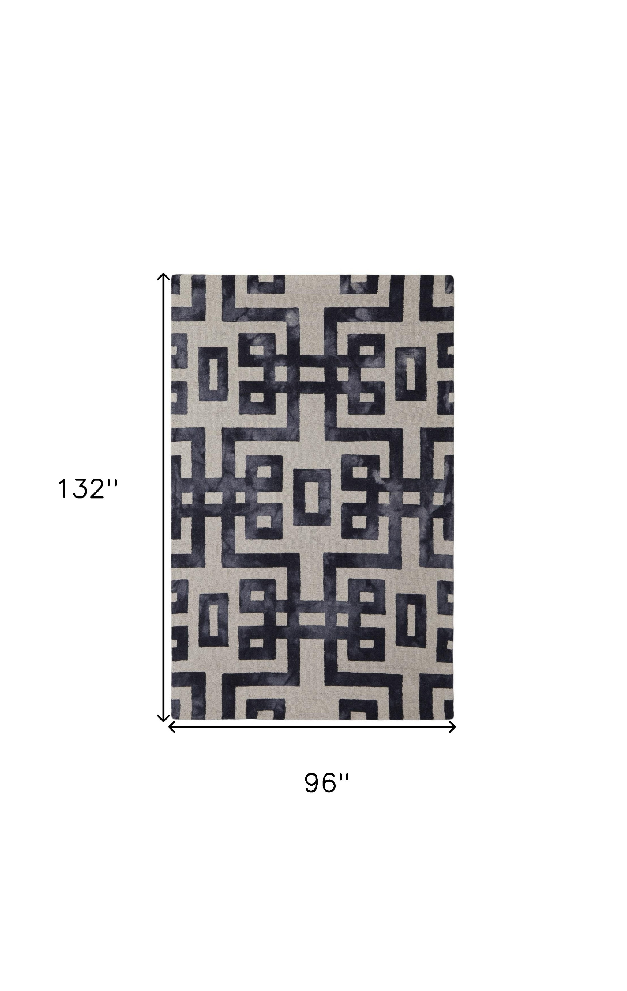 geometric hand tufted area rug, hand tufted area rug, tufted area rug, ivory black wool geometric, 8' X 11' ivory black wool |