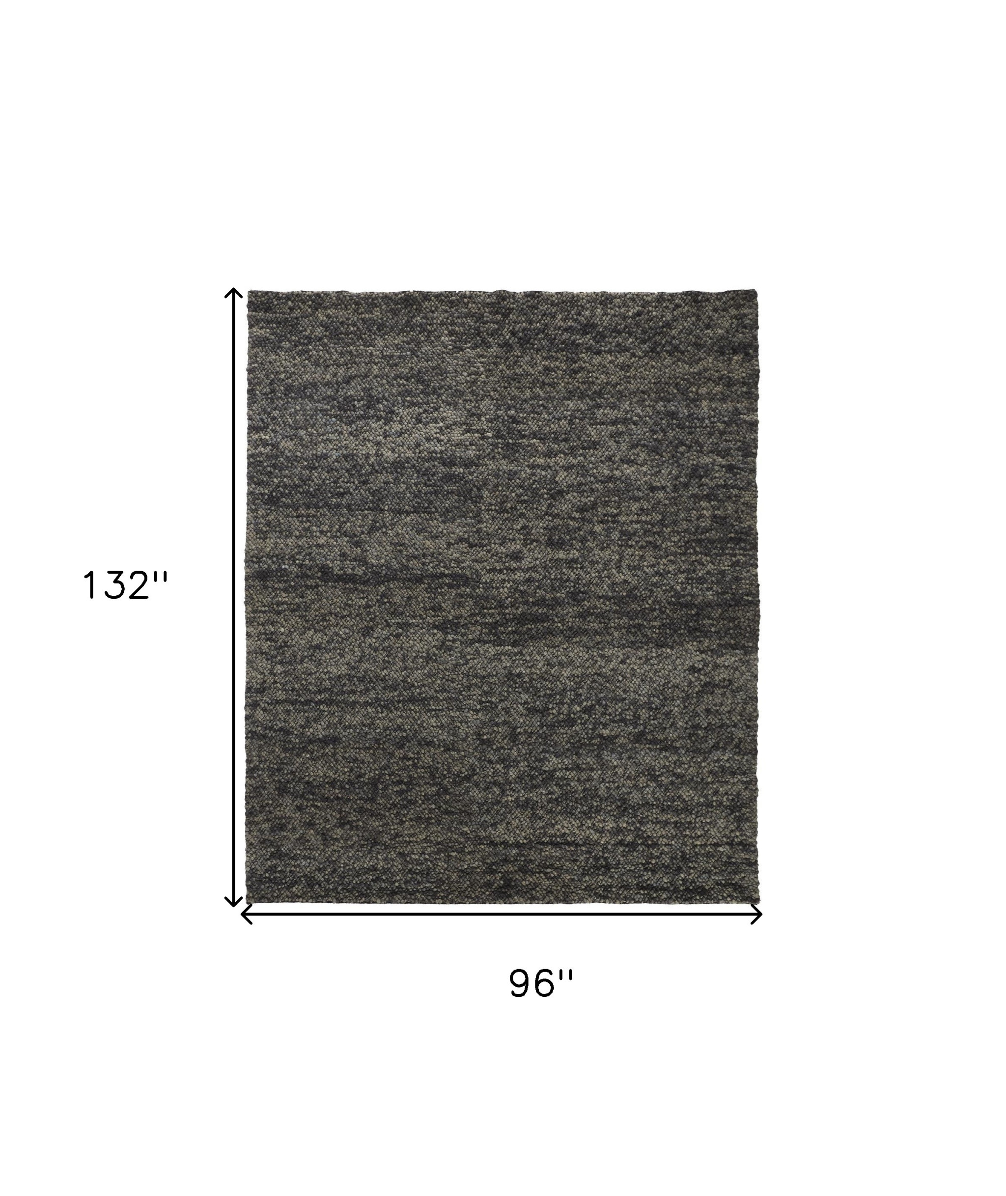 This 8-foot x 11-foot gray and black wool abstract shag hand woven area rug, is a great way to add warmth to a room. Ideal for spaces with kids and pets, this rug is stain resistant to help repel dirt and spilled liquids. Crafted by skilled artisans, this hand woven rug is genuine and unique. No two will be exactly alike. Rugs are a great way to showcase your style, hide imperfections, warm your home and reduce noise. The retro shag construction of this luxurious rug will provide a soft and comfortable barrier to color tile and hardwood floors. 96.00-inch h x 132.00-inch w x 0.68-inch d.