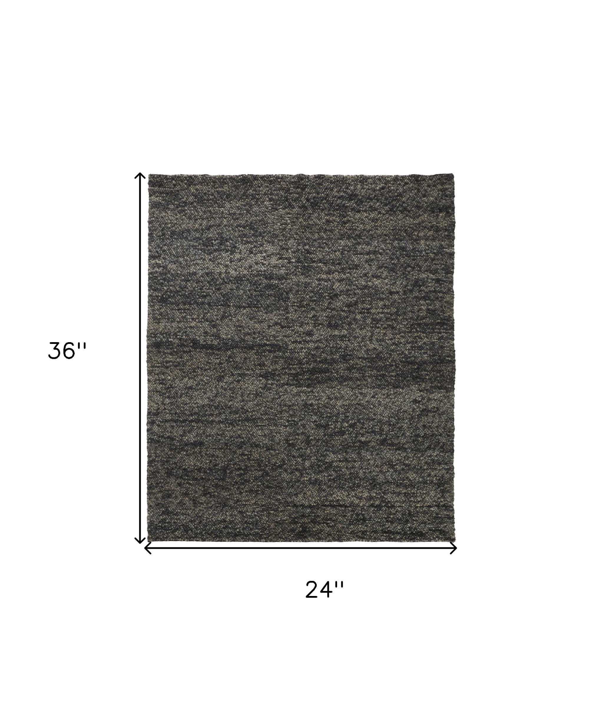 Add great coloration and comfortable texture to your space with this 2-foot x 3-foot gray and black wool abstract hand woven distressed area rug. Ideal for spaces with kids and pets, this rug is stain resistant to help repel dirt and spilled liquids. Crafted by skilled artisans, this hand woven rug is genuine and unique. No two will be exactly alike. Rugs are a great way to showcase your style, hide imperfections, warm your home and reduce noise. 24.00-inch h x 36.00-inch w x 0.68-inch d.