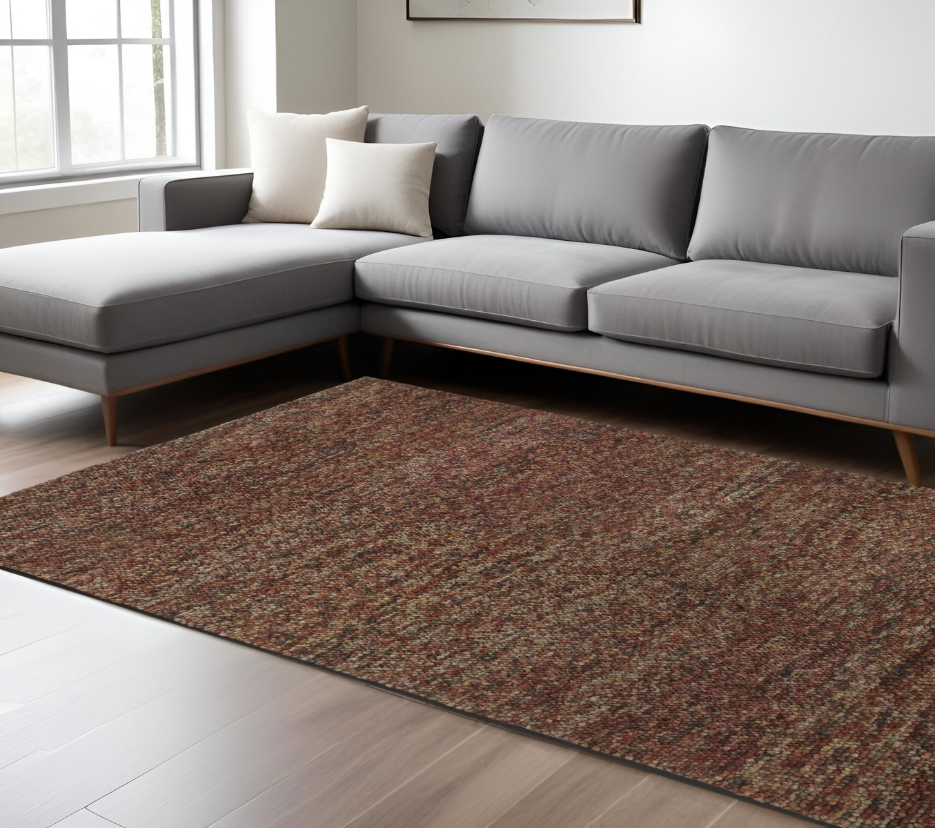 This 8-foot x 11-foot orange red and brown wool abstract hand woven distressed area rug, is a great way to add warmth to a room. Ideal for spaces with kids and pets, this rug is stain resistant to help repel dirt and spilled liquids. Crafted by skilled artisans, this hand woven rug is genuine and unique. No two will be exactly alike. Rugs are a great way to showcase your style, hide imperfections, warm your home and reduce noise. This larger sized, transitional styled rug is ready to create a focal point or statement piece in your room. 96.00-inch h x 132.00-inch w x 0.68-inch d.