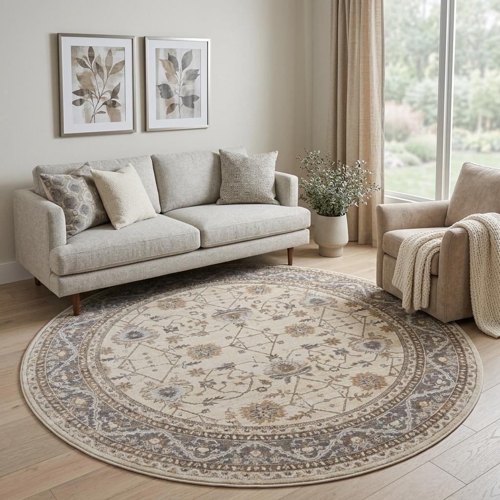 gray oriental distressed round rug, oriental distressed round rug, distressed round rug, tan ivory gray oriental distressed, ivory gray oriental distressed round |