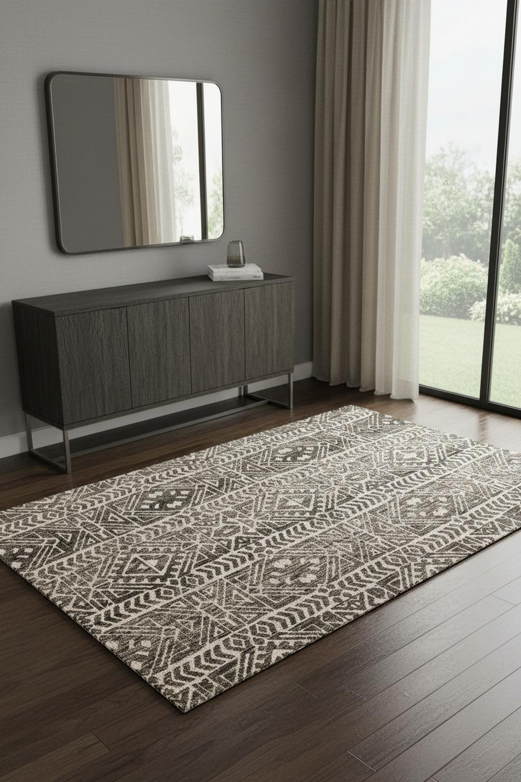 This 4' x 6' brown taupe and ivory striped stain resistant area rug, is a great way to add warmth to a room. This rectangle shaped rug features a striped design in brown taupe and ivory to give it visual interest. A classic shape marries with good looking design for your space Ideal for spaces with kids and pets, this rug is stain resistant to help repel stains and spilled liquids. Area Rugs help to give warmth and sense of home to your space. 0.4" H x 42" W x 66" D