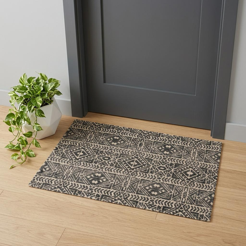Add some artistry to your room with this 2' x 3' gray black and ivory striped stain resistant area rug. This rectangle shaped rug features a striped design in gray black and ivory to give it visual interest. A classic shape marries with good looking design for your space Ideal for spaces with kids and pets, this rug is stain resistant to help repel stains and spilled liquids. Area Rugs help to give warmth and sense of home to your space. 0.4" H x 24" W x 36" D