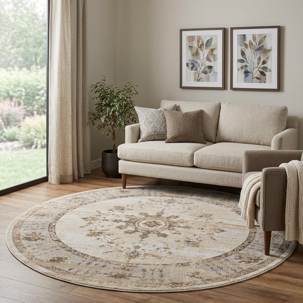 gray oriental distressed round rug, oriental distressed round rug, distressed round rug, tan brown gray oriental distressed, brown gray oriental distressed round |
