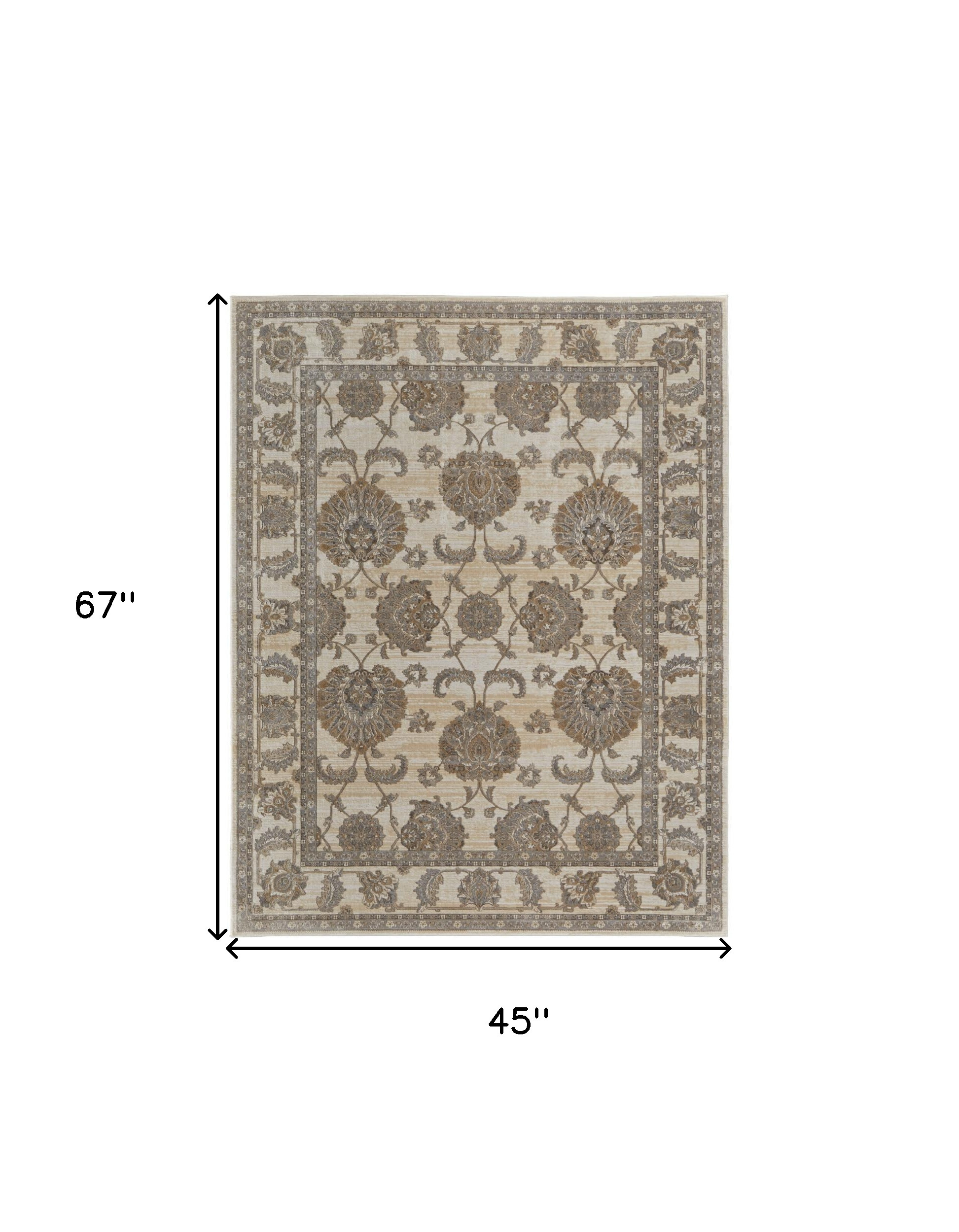 Add great coloration and comfortable texture to your space with this 4-foot x 6-foot tan and brown oriental area rug. This rectangular rug features a power loom technique, ensuring durability and a flawless finish. Made from soft viscose, it delivers a luxurious feel underfoot while enhancing your decor. The latex backing provides additional grip, making it suitable for high-traffic areas. For optimal comfort and longevity, a rug pad is recommended, making this piece an ideal addition to any room in your home. 45.00-inch h x 67.00-inch w x 0.39-inch d.