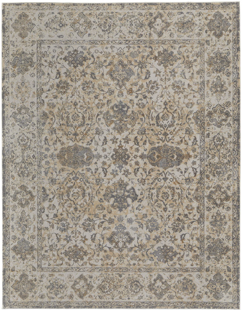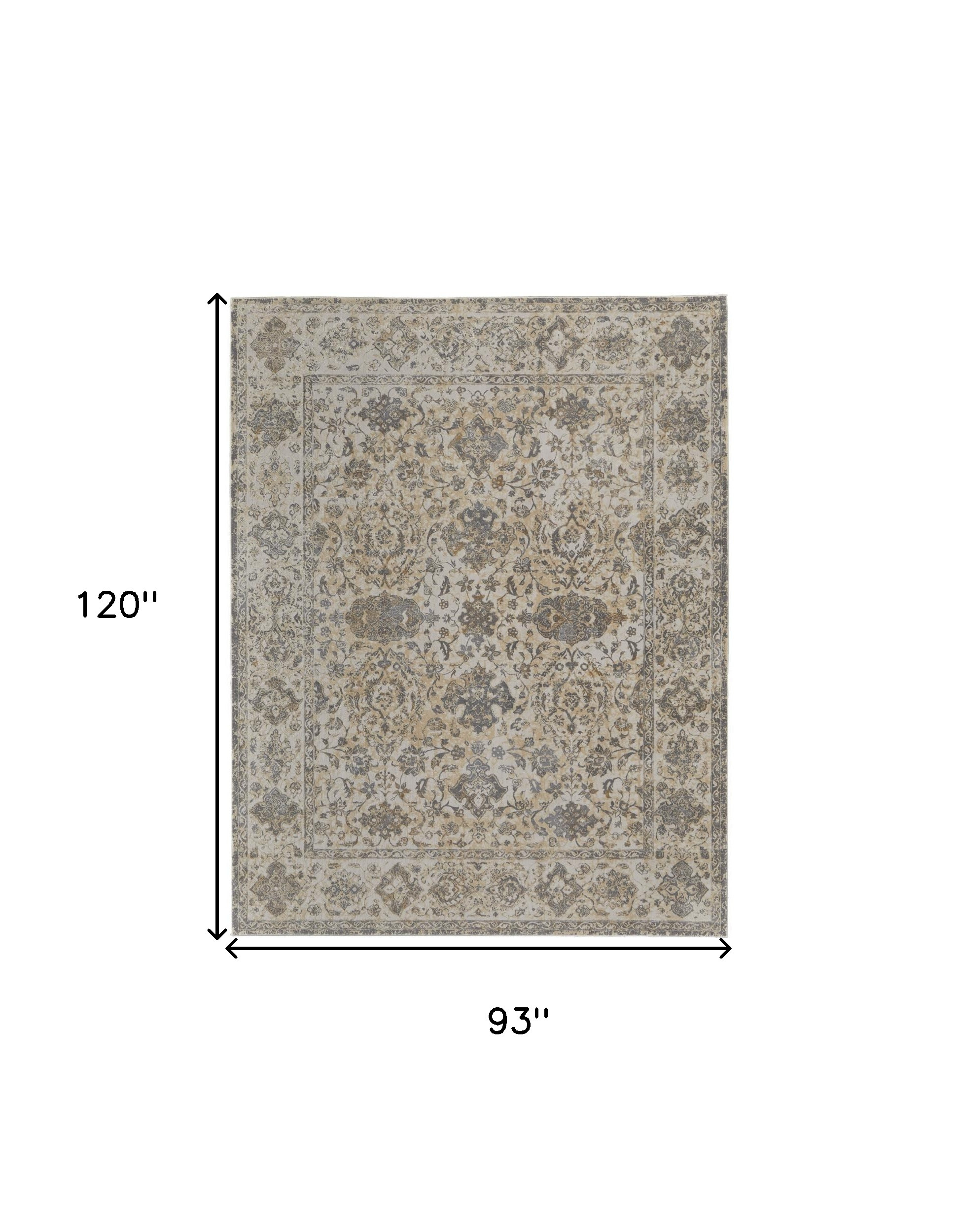 Add great coloration and comfortable texture to your space with this 8-foot x 10-foot gray ivory and tan oriental area rug. Designed in a rectangular shape, this rug is crafted using a power loom technique for durability and elegance. The machine-made construction ensures a refined finish that complements various decor styles. Featuring a latex backing material, it provides stability and minimizes shifting on your floors. For added comfort and longevity, using a rug pad is highly recommended. Made from soft viscose, it enhances the cozy ambiance in your home. 93.00-inch h x 120.00-inch w x 0.39-inch d.