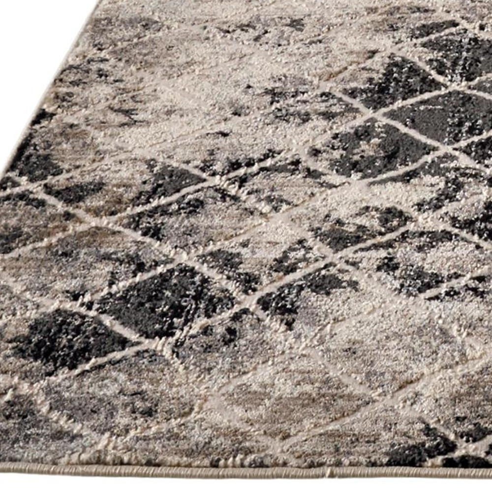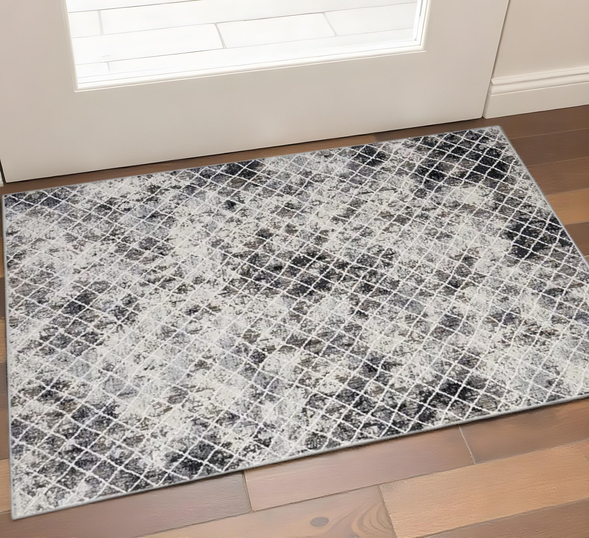 This 2-foot x 3-foot gray and ivory geometric area rug, is a great way to add warmth to a room. Ideal for spaces with kids and pets, this rug is stain resistant to help repel dirt and spilled liquids. Built to last, this rug crafted from polypropylene fibers is known for its durability and long lasting appeal. Rugs are a great way to showcase your style, hide imperfections, warm your home and reduce noise. 26.00-inch h x 36.00-inch w x 0.41-inch d.