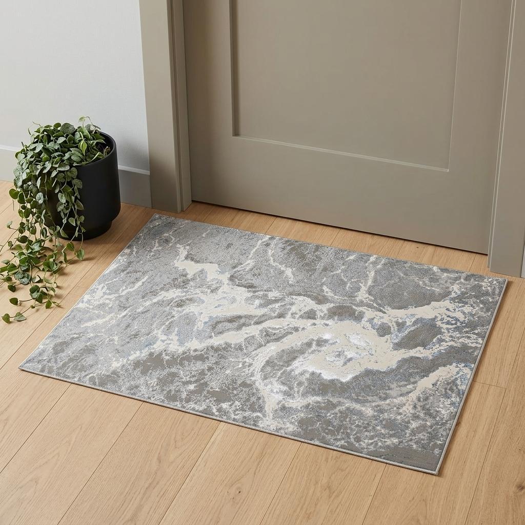 Set an inviting tone in your space with this 2-foot x 3-foot gray and ivory abstract power loom area rug. This rectangle shaped rug features a abstract design in gray and ivory to give it visual interest. A classic shape marries with good looking design for your space ideal for spaces with kids and pets, this rug is stain resistant to help repel stains and spilled liquids. Area rugs help to give warmth and sense of home to your space. 20-inch H x 34-inch W x 0.39-inch D