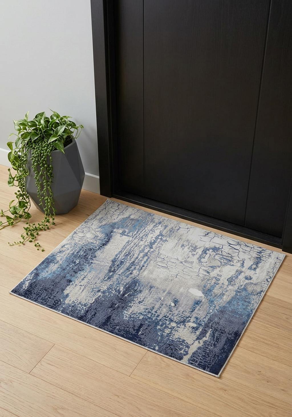 Set an inviting tone in your space with this 2' x 3' ivory blue and black abstract power loom distressed area rug. This rectangle shaped rug features a abstract design in ivory blue and black to give it visual interest. A classic shape marries with good looking design for your space Made in Turkey, this rug offers high quality combined with good looking designer sensibilities. Place this area rug against a hardwood or tile floor and it will enliven your living space with style and sophistication. 0.39" H x 20" W x 34" D
