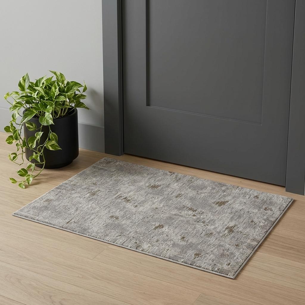 Add great coloration and comfortable texture to your space with this 2-foot x 3-foot gray ivory and tan abstract distressed area rug. Ideal for spaces with kids and pets, this rug is stain resistant to help repel dirt and spilled liquids. Built to last, this rug crafted from polypropylene and polyester fibers is known for its durability and long lasting appeal. Rugs are a great way to showcase your style, hide imperfections, warm your home and reduce noise. This smaller sized, contemporary styled rug is just what you need for your walkway, bedside, in front of door, cabinet, refrigerator, or chair. 20.00-inch h x 34.00-inch w x 0.63-inch d.
