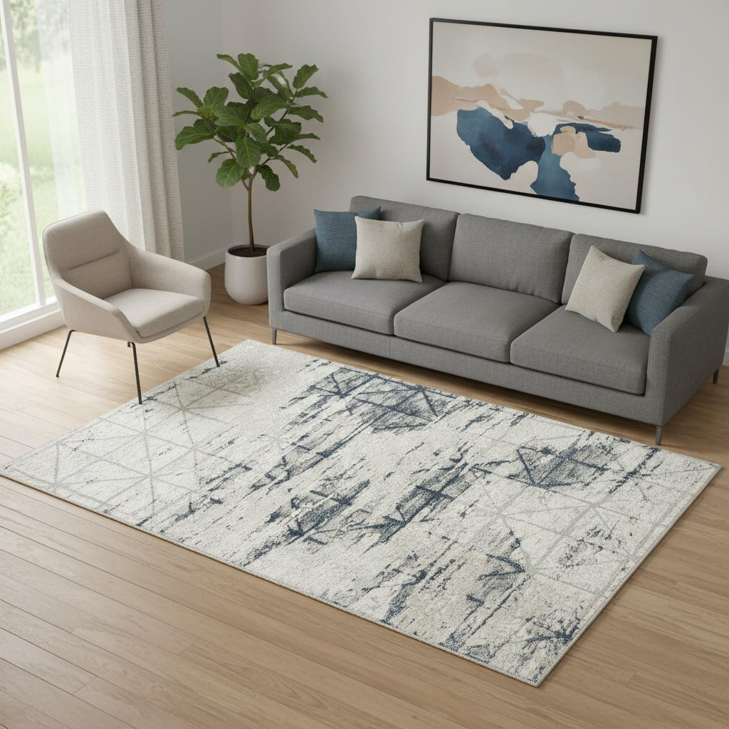 Add some artistry to your room with this 5' x 7' blue abstract stain resistant area rug. This rectangle shaped rug features a abstract design in blue to give it visual interest. A classic shape marries with good looking design for your space Made in Turkey, this rug offers high quality combined with good looking designer sensibilities. Ideal for spaces with kids and pets, this rug is stain resistant to help repel stains and spilled liquids. Place this area rug against a hardwood or tile floor and it will enliven your living space with style and sophistication. 0.39" H x 60" W x 84" D