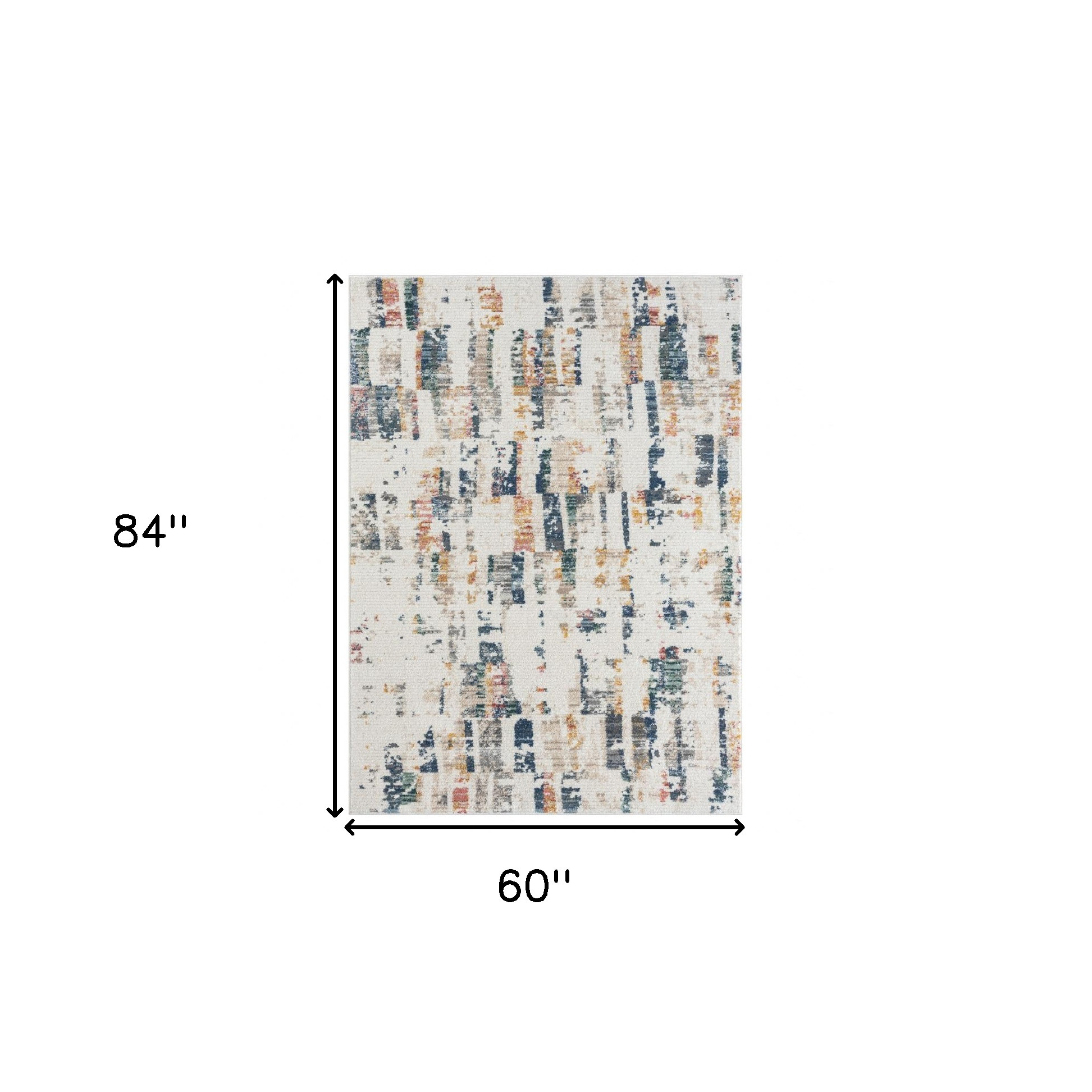Add some artistry to your room with this 5' x 7' blue abstract area rug. This rectangle shaped rug features a abstract design in blue to give it visual interest. A classic shape marries with good looking design for your space This superior Turkish rug represents the highest quality and is built to last. Place this area rug against a hardwood or tile floor and it will enliven your living space with style and sophistication. 0.9" H x 60" W x 84" D