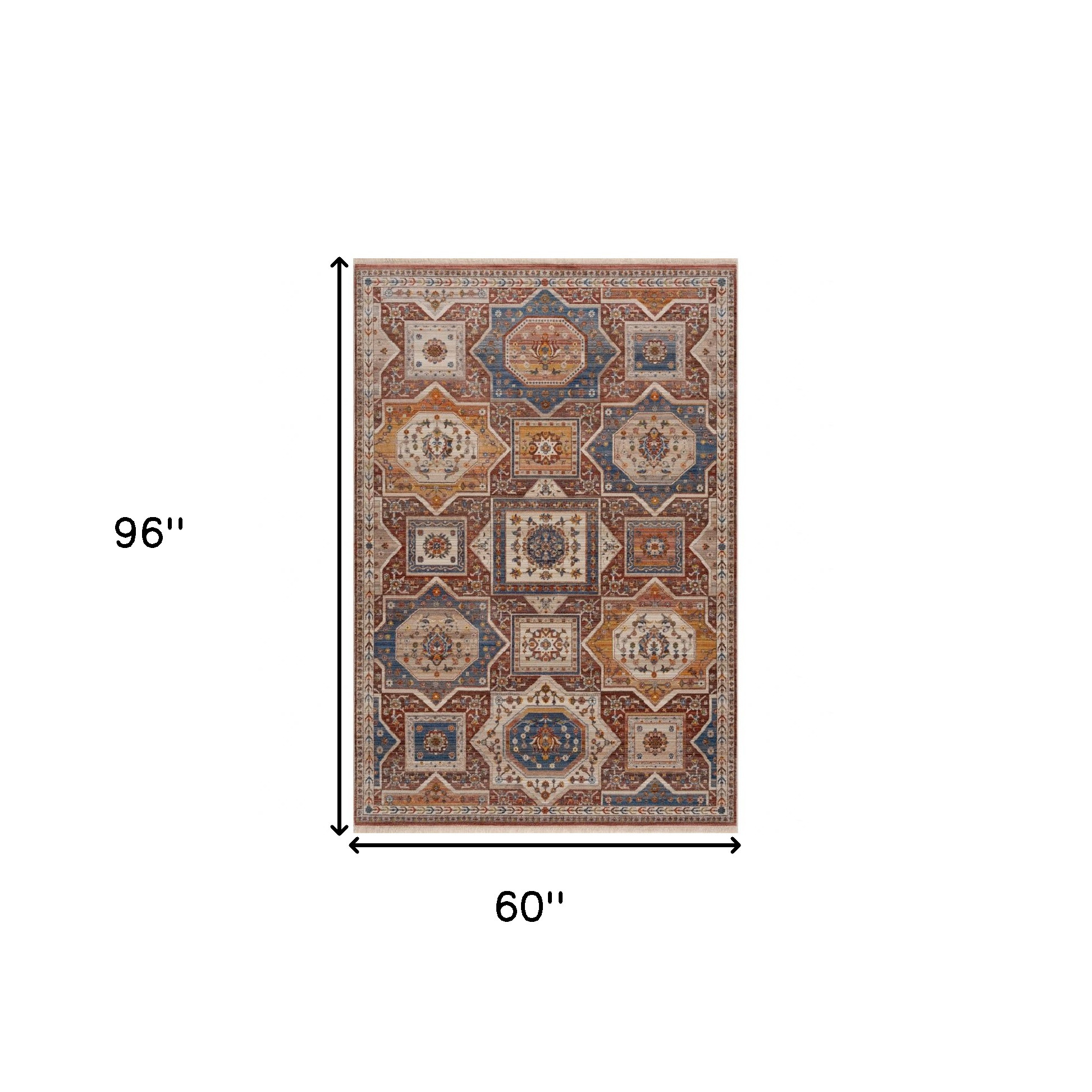 Add some artistry to your room with this 5' x 8' red southwestern area rug. This rectangle shaped rug features a southwestern design in red to give it visual interest. A classic shape marries with good looking design for your space Made in Turkey, this rug offers high quality combined with good looking designer sensibilities. Area Rugs help to give warmth and sense of home to your space. 0.25" H x 60" W x 96" D