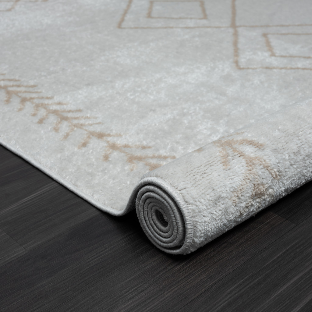 Add some artistry to your room with this 8' x 10' cream diamond area rug. This rectangle shaped rug features a diamond design in cream to give it visual interest. A classic shape marries with good looking design for your space Made in Turkey, this rug offers high quality combined with good looking designer sensibilities. Place this area rug against a hardwood or tile floor and it will enliven your living space with style and sophistication. 1" H x 93" W x 117" D