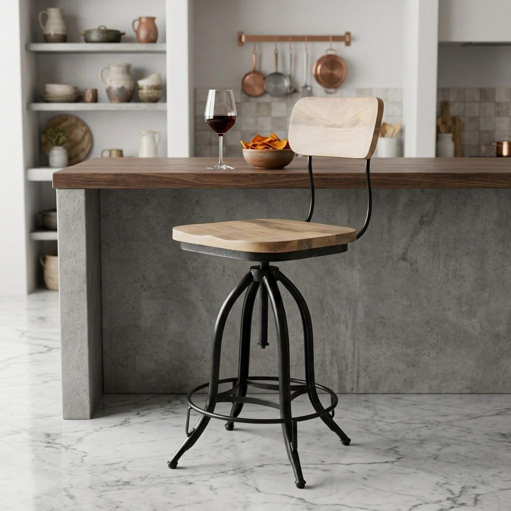 Bring a trendy bar vibe to your space, with this brown and black solid wood and steel counter height swivel bar chair. The brown solid wood seat of this stool is a nice contrast to the high quality, black steel of the base. A full_back mixed with a bucket shaped seat design makes this chair both comfortable and fashionable. Designed with a footrest for comfort and convenience. 45.5-inch h x 16.25-inch w x 18.5-inch d.