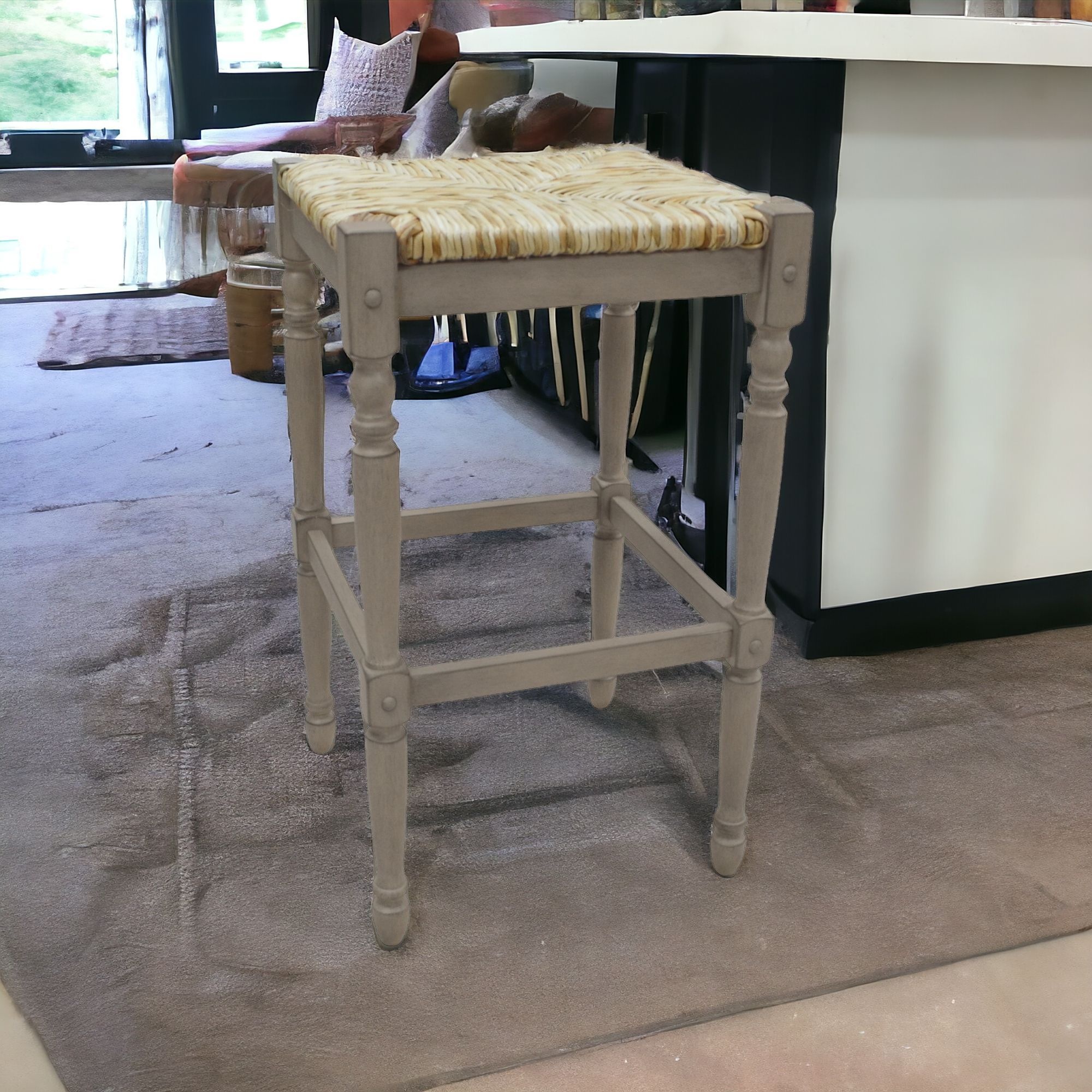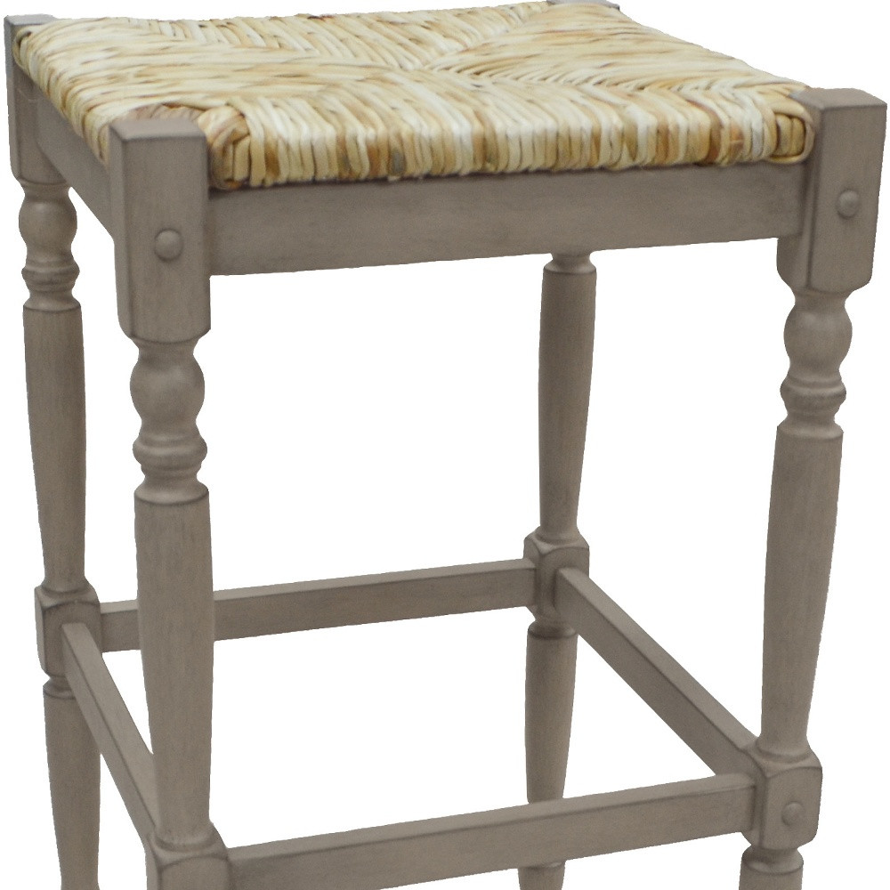 Comfortable enough to sit in for awhile, this 29-inch natural and gray solid wood backless bar height bar chair with footrest will transcend the look of your room. Quality construction from gray solid wood combines with natural rush to give this stool a fresh and updated look. Designed to be good looking and practical, this backless bar chair features a square shaped seat. Designed with a footrest for comfort and convenience. 29.25-inch H x 16.5-inch W x 16.5-inch D