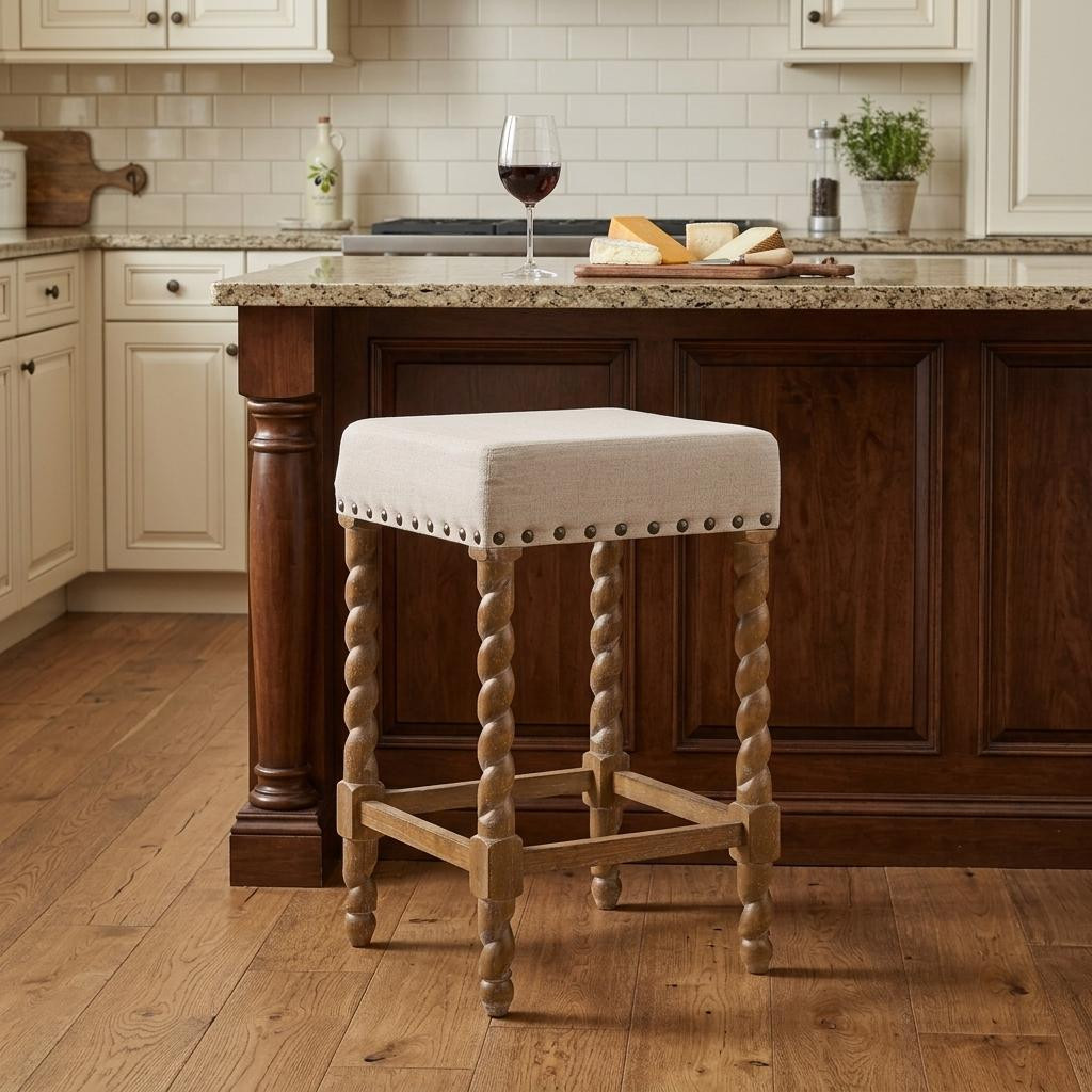 24" cream natural faux leather, counter height bar chair footrest, cream natural faux leather solid, backless counter height bar chair, leather solid wood backless counter |