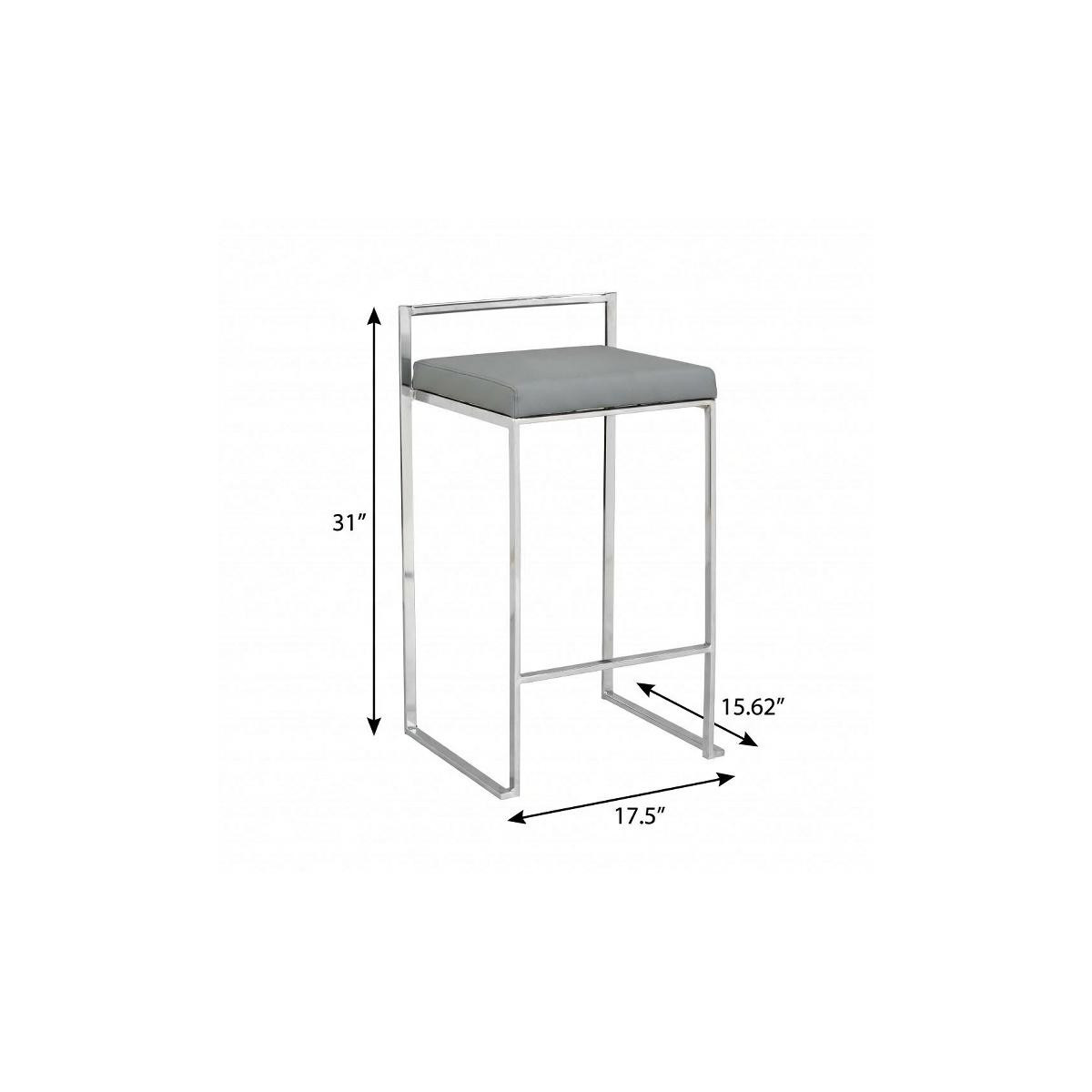 Comfortable enough to sit in for awhile, this 31" gray faux leather and solid wood backless bar height chair with footrest will transcend the look of your room. A chrome solid wood frame is finished off with a gray faux leather seat that is the epitome of quality construction and design. The square shape of the seat give this backless chair a fresh and fashionable look. Designed with a footrest for comfort and convenience. 31" H x 17.5" W x 15.625" D