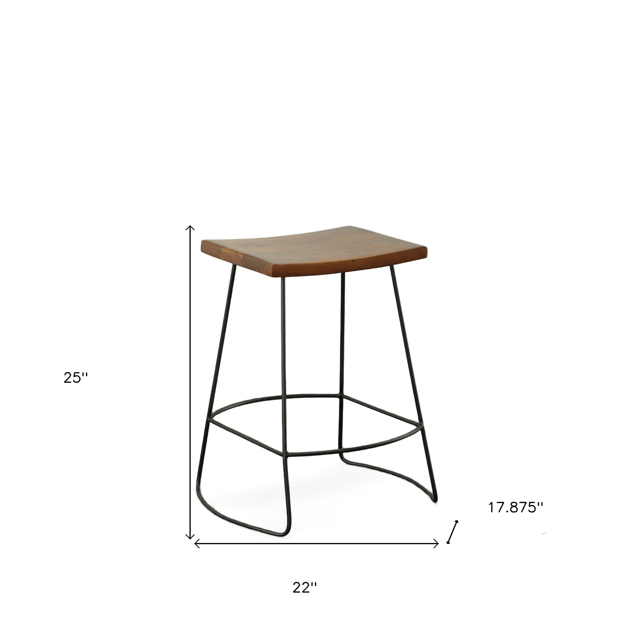 Bring a trendy bar vibe to your space, with this set of two 25-inch chestnut and black solid wood and steel backless counter height bar chairs. The black coloration of the high quality steel base marries nicely with the chestnut solid wood seat. Designed to be good looking and practical, this backless bar chair features a rectangle shaped seat. Designed with a footrest for comfort and convenience. 25-inch h x 22-inch w x 17.88-inch d.
