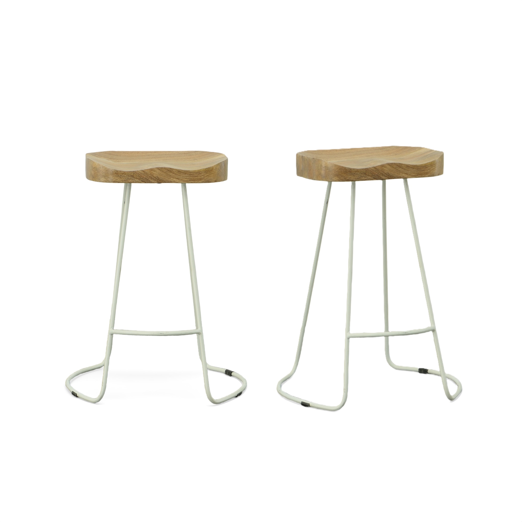 Comfortable enough to sit in for awhile, this set of two 25-inch natural and white solid wood and steel backless counter height bar chairs will transcend the look of your room. Quality construction from white steel combines with natural solid wood to give this stool a fresh and updated look. A backless mixed with a bucket shaped seat makes this chair both comfortable and fashionable. Designed with a footrest for comfort and convenience. 25.25-inch h x 18.5-inch w x 17-inch d.