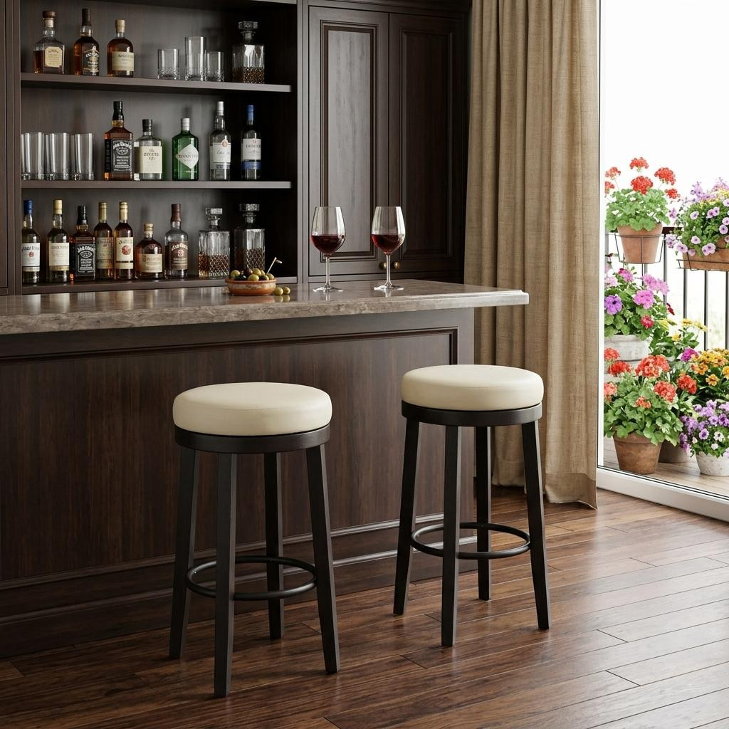30" cream espresso faux leather, swivel bar chairs, height swivel bar chairs, set 30" cream espresso faux, leather solid wood backless bar |