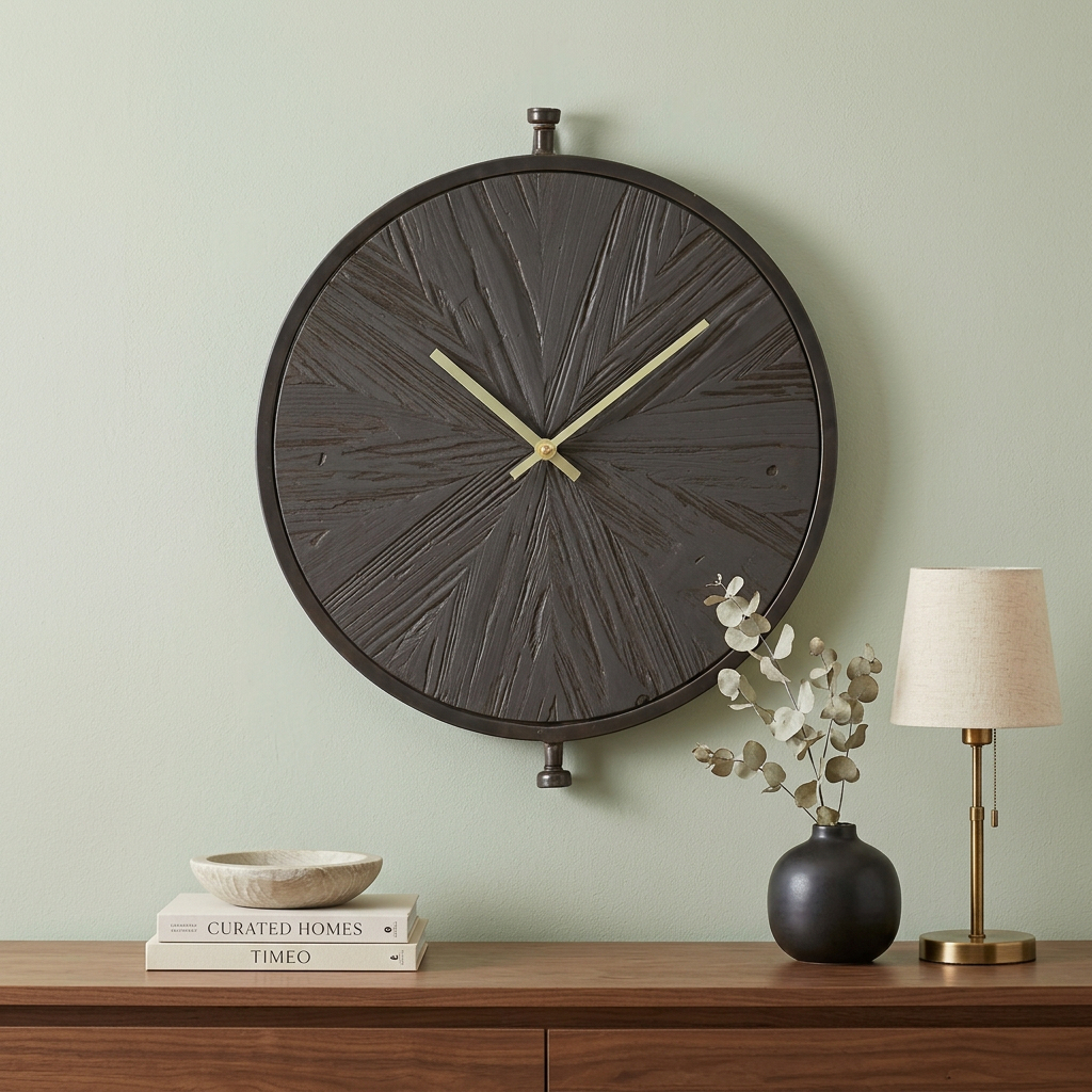 This 18-inch circle black wood and solid wood analog wall clock includes three moving hands on the face that move smoothly to indicate the hour, minute and seconds. Has a traditional circle shape, which brings an essence of wholeness to your home. Made from the highest quality wood, the clock face not only looks good but will stand the test of time. Elevate the decor of any room in your house. With its unique design and practical purpose, this clock will add flair to your home while also acting as an essential tool. 16.25-inch H x 17.75-inch W x 2-inch D