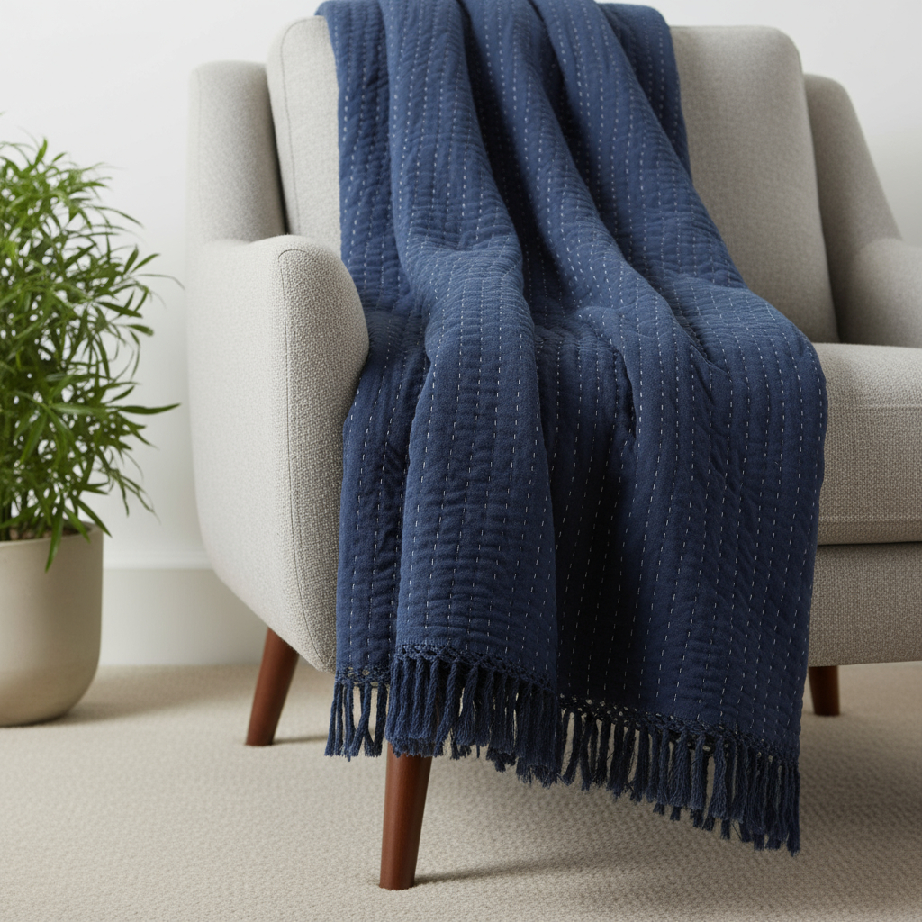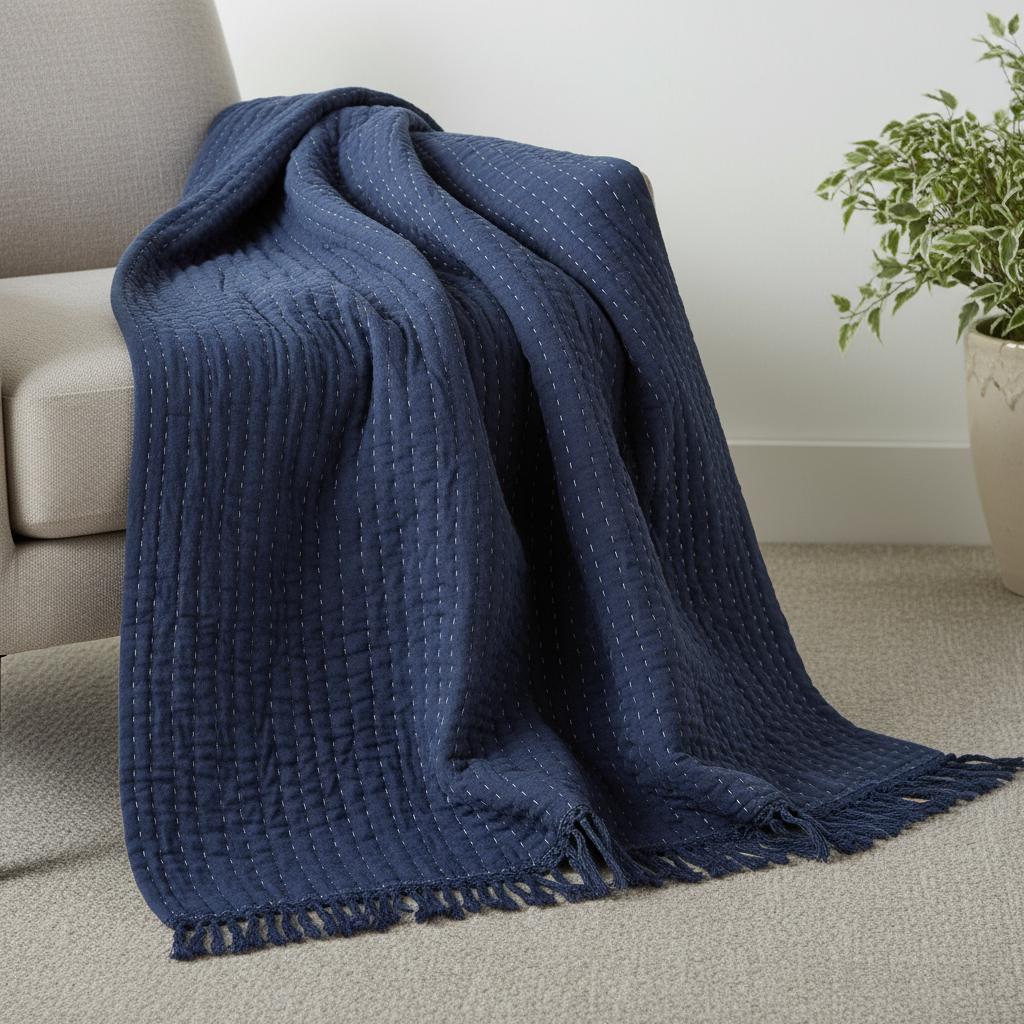 cotton solid color throw blanket, solid color throw blanket, woven cotton solid color throw, blue woven cotton solid color, blue woven cotton solid |