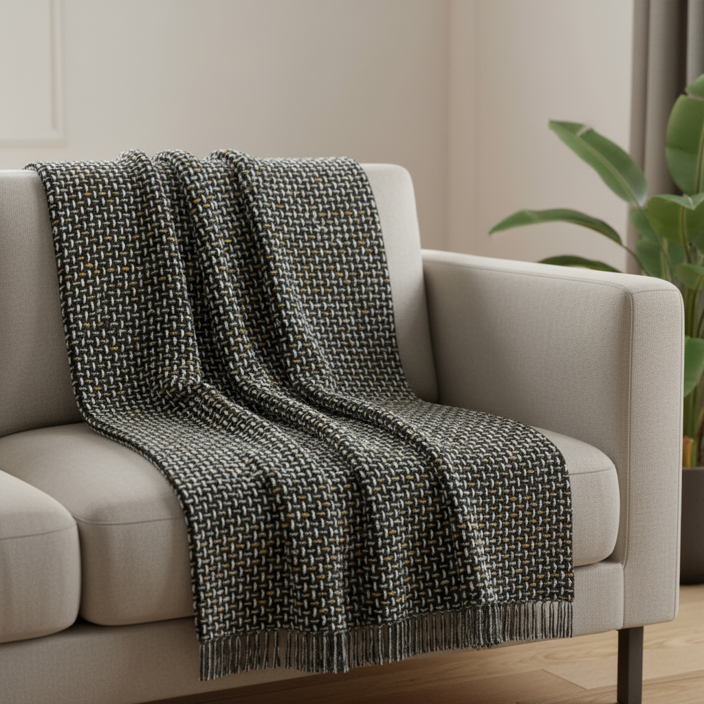 woven cotton geometric throw blanket, cotton geometric throw blanket, geometric throw blanket, gold woven cotton geometric throw, black gold woven cotton geometric |